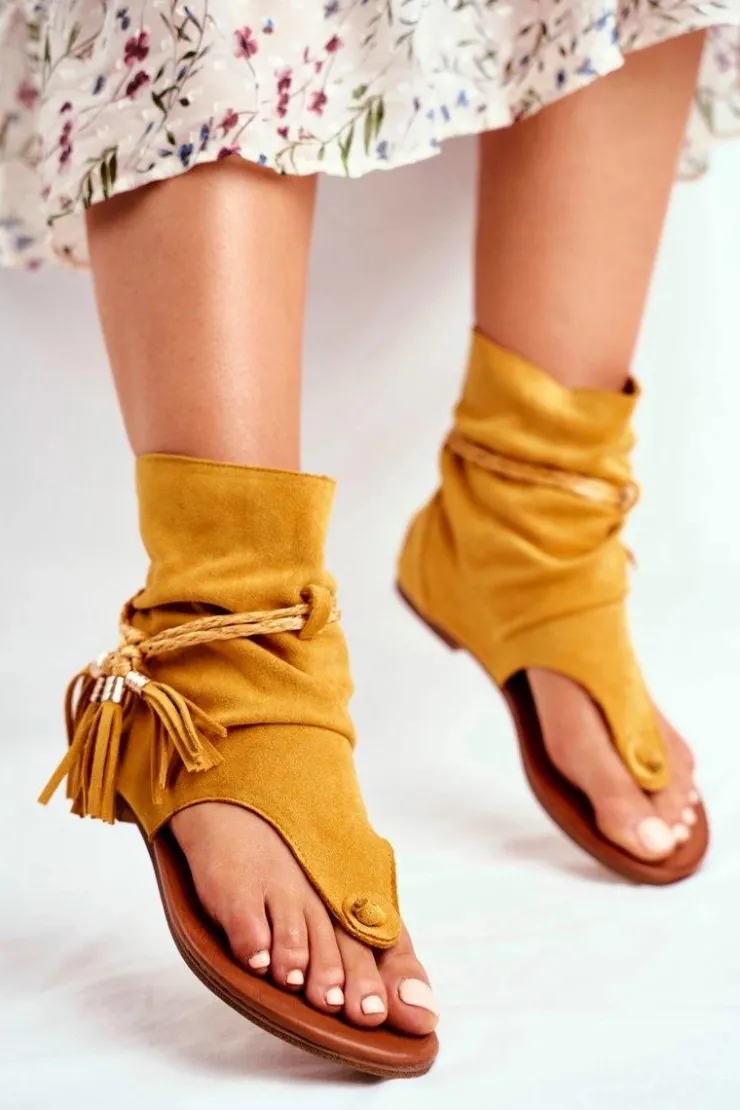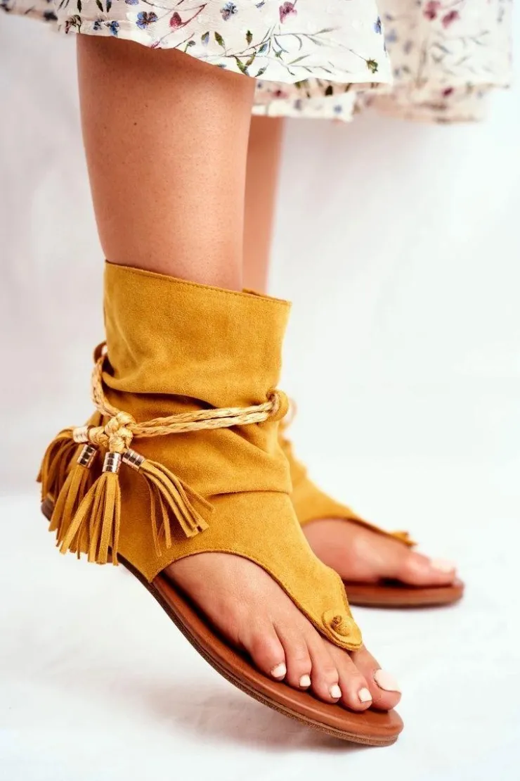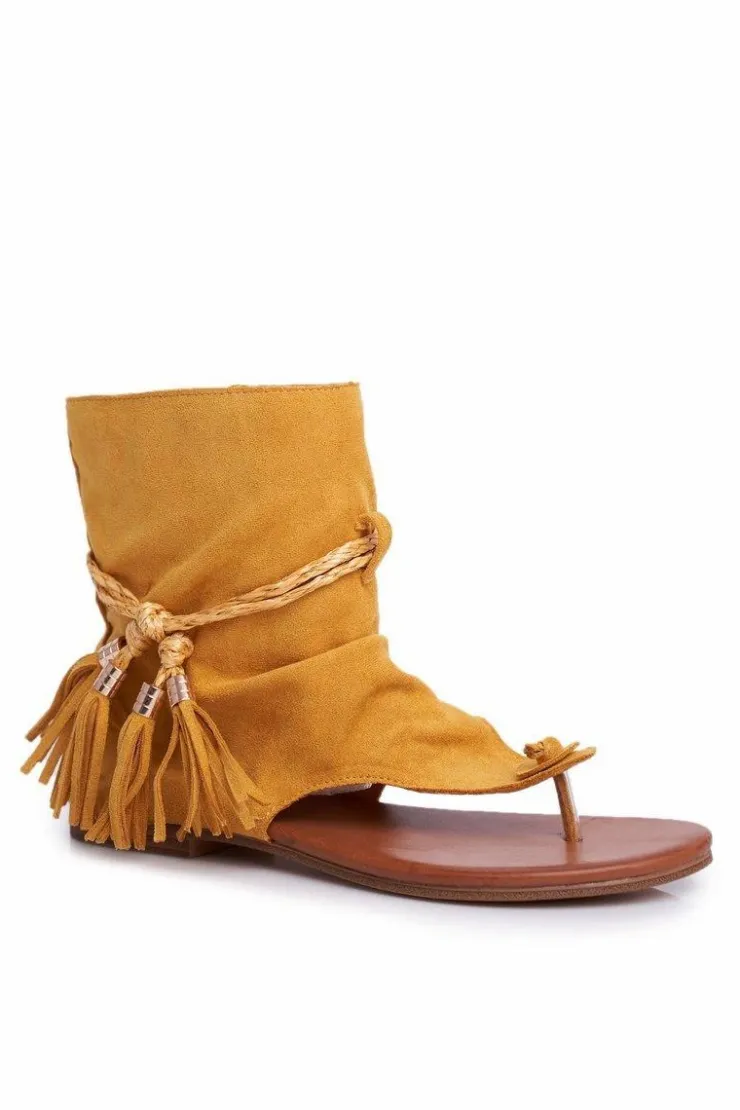 Damskie Boto Damskie Sandałki Japonki Z Cholewką Żółte SL1011 Madrit