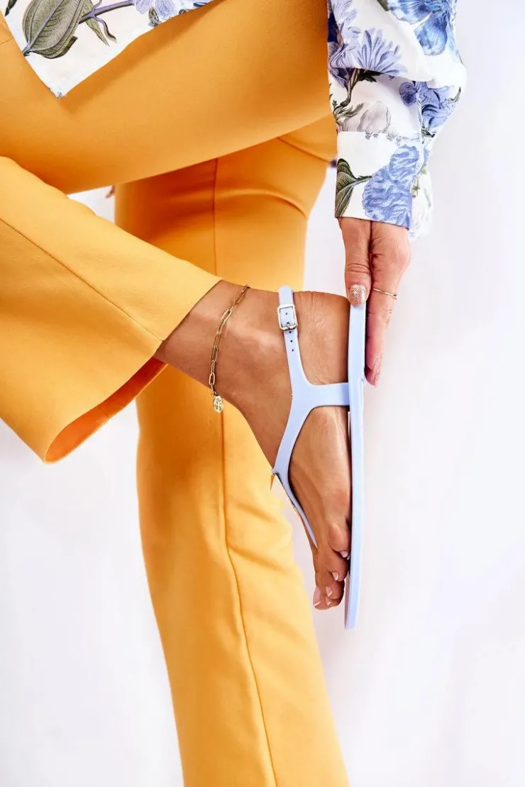 Najmodniejsze w tym sezonie klapki! Wykonane z gumowego tworzywa, zapinane na sprzączkę. Świetnie sprawdzą się w letnim sezonie. Przy wyborze rozmiaru, prosimy sugerować się tabelą rozmiarów.