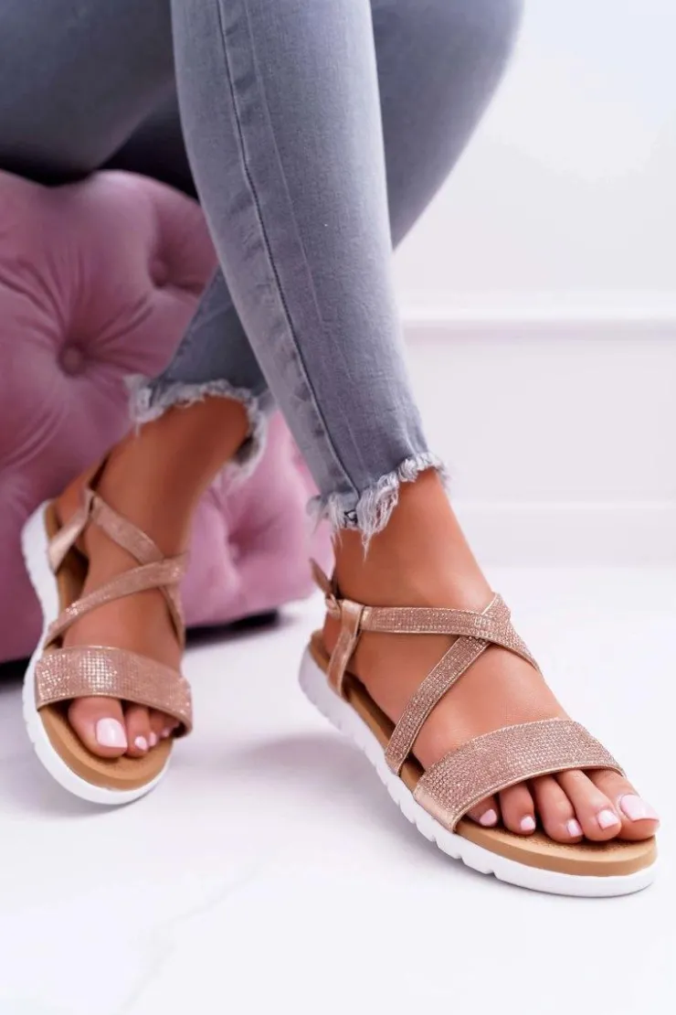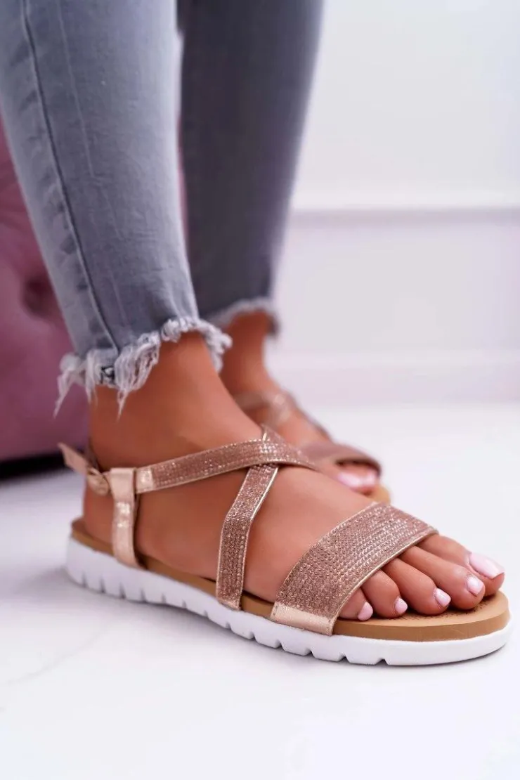 Damskie Boto Damskie Sandały Lu Boo Z Cyrkoniami 406-5 Różowe Złoto Stella
