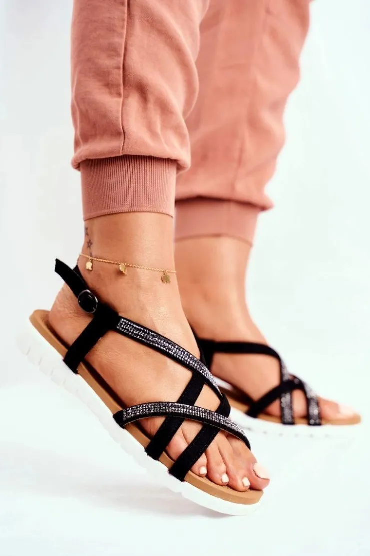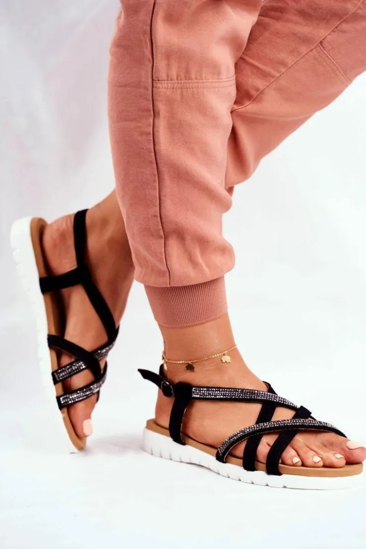 Damskie Boto Damskie Sandały Lu Boo Z Cyrkoniami 406-6 Czarne Feen