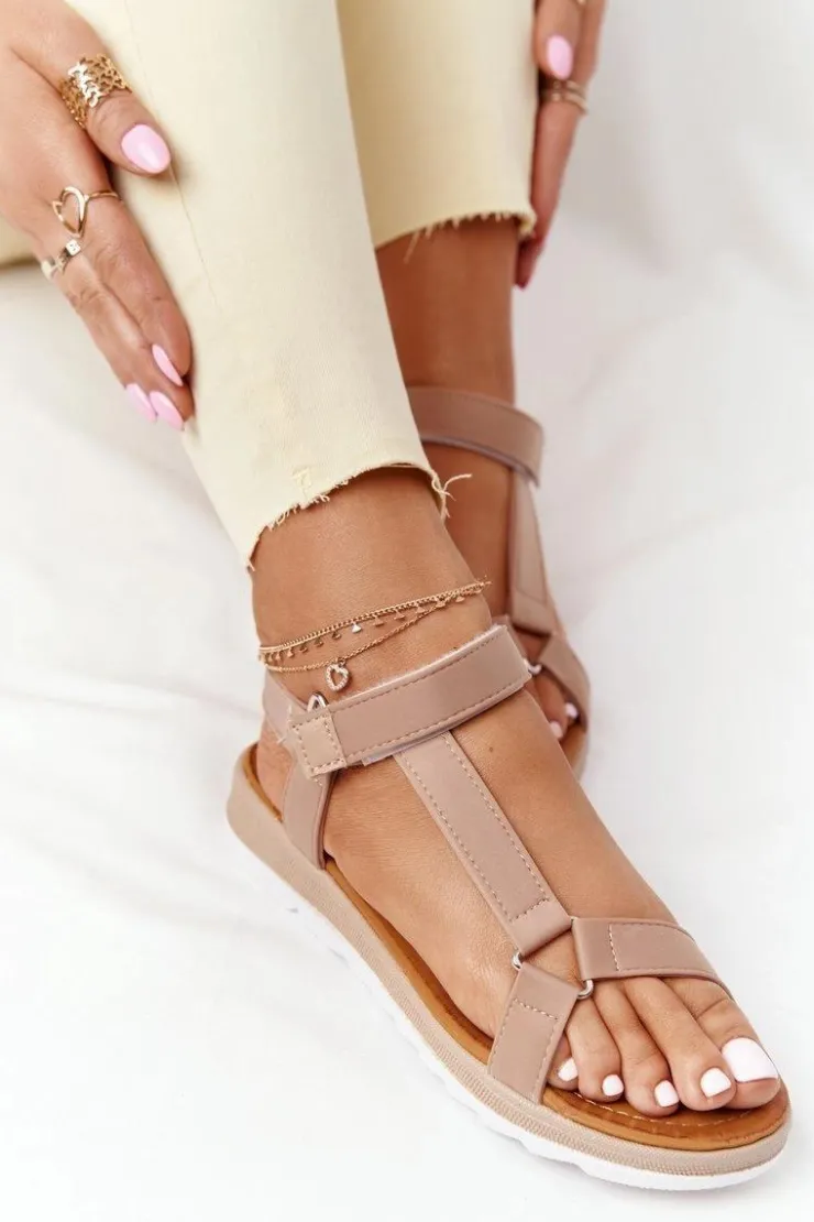 Sportowe sandały damskie na gumowej podeszwie. Buty posiadają miękką wkładkę z eko skóry. Cholewka wykonana jest z przyjemnej w dotyku, piankowej tkaniny. Wyjątkowy fason dostępny jest w wielu pięknych kolorach! Przy wyborze rozmiaru prosimy sugerować się tabelą rozmiarów.