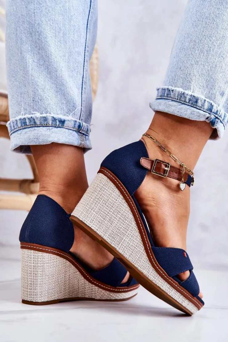 Wyjątkowe sandały na koturnie z plecionką. Buty zostały wykonane z materiału tekstylnego. Zapiętek usztywniany. Miękka wkładka wykonana z połączenia eko skóry oraz materiału tekstylnego zadba o Twój komfort podczas użytkowania. Zapinane wokół kostki na regulowany pasek ze sprzączką. Zdobienie nicią na jednym z pasków. Buty posiadają odkryte palce i zakrytą piętę. Dzięki takiemu obcasowi buty są stabilniejsze od tradycyjnych szpilek. Świetny model na letnie dni! Przy wyborze rozmiaru prosimy sugerować się tabelą rozmiarów.