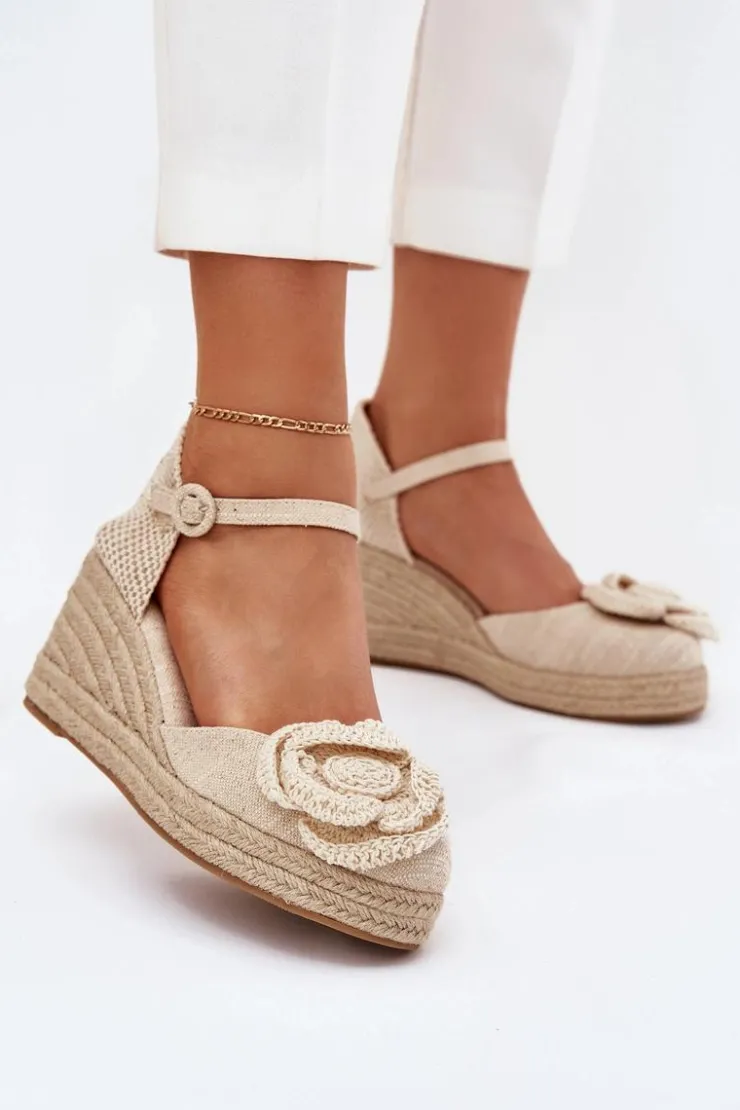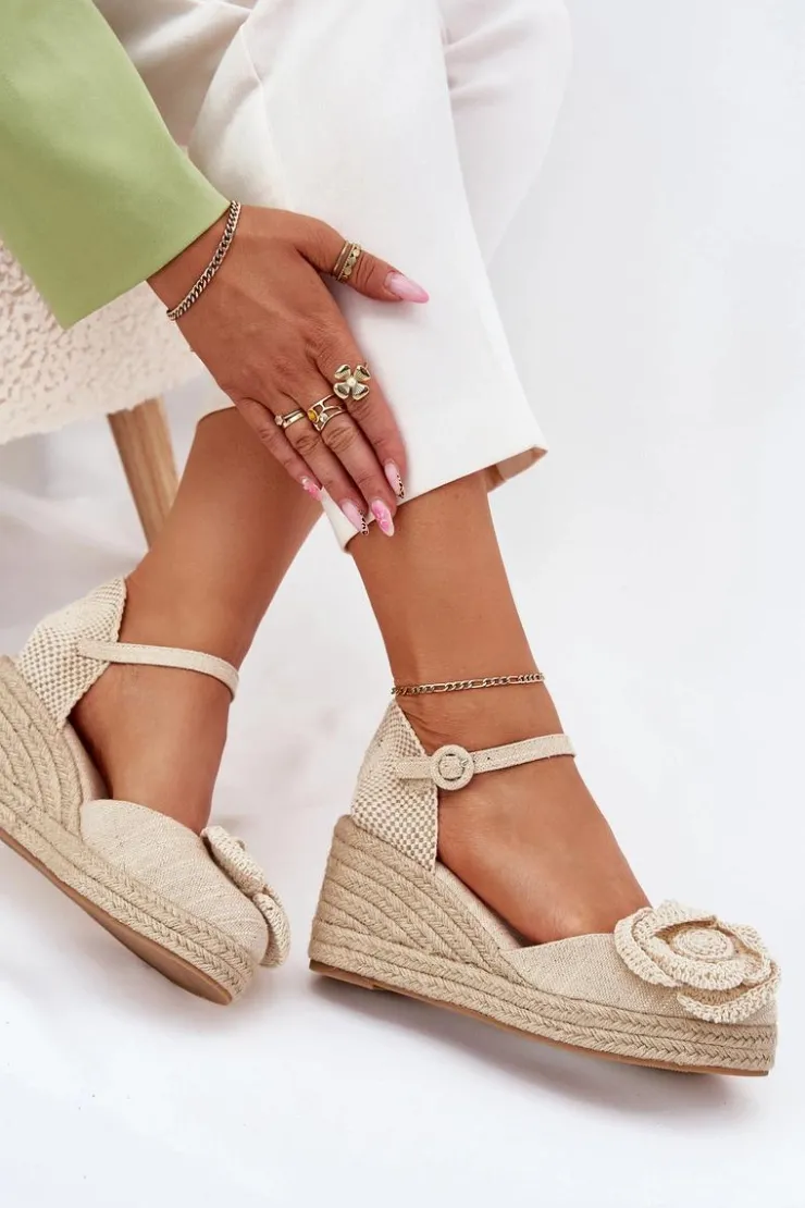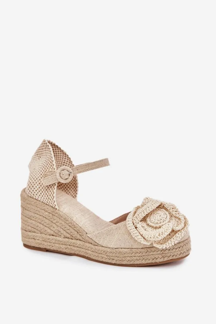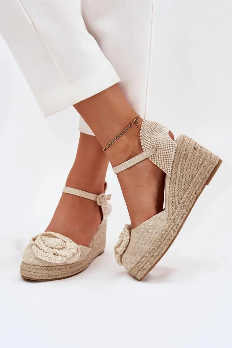 Sandały damskie wykonane z materiału tekstylnego, osadzone na koturnie z plecionką, to stylowa i wygodna opcja na letnie dni. Zakryte noski dodają elegancji, a szydełkowy kwiat z przodu przyciąga wzrok, nadając im wyjątkowego uroku. Zapinane na sprzączkę z regulowanym paskiem, zapewniają idealne dopasowanie do stopy. Doskonałe do letnich stylizacji, łączą komfort z modnym wyglądem. Przy wyborze rozmiaru prosimy sugerować się tabelą rozmiarów.
