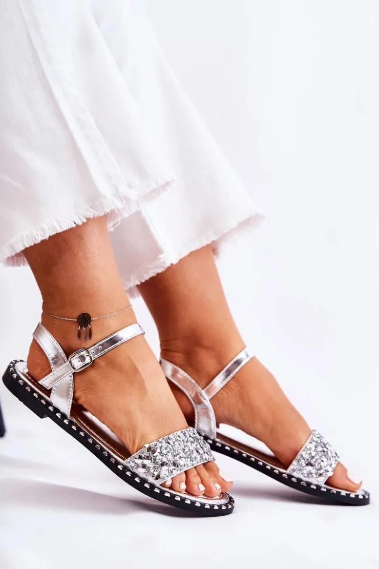Modne sandały przyozdobione ćwiekami na przednim pasku. Model ten został osadzony na płaskim obcasie. Sandałki są wykonane z eko skóry. Posiadają regulowany pasek zapinany wokół kostki na sprzączkę. Miękka wkładka zadba o Twój komfort podczas całodziennego użytkowania. Wokół wkładki zostały umieszczone ćwieki. Podeszwa wykonana z gumowego tworzywa, która jest dodatkowo antypoślizgowa. Świetny model na lato, niezwykle przewiewny. Przy wyborze rozmiaru prosimy kierować się tabelą rozmiarów.