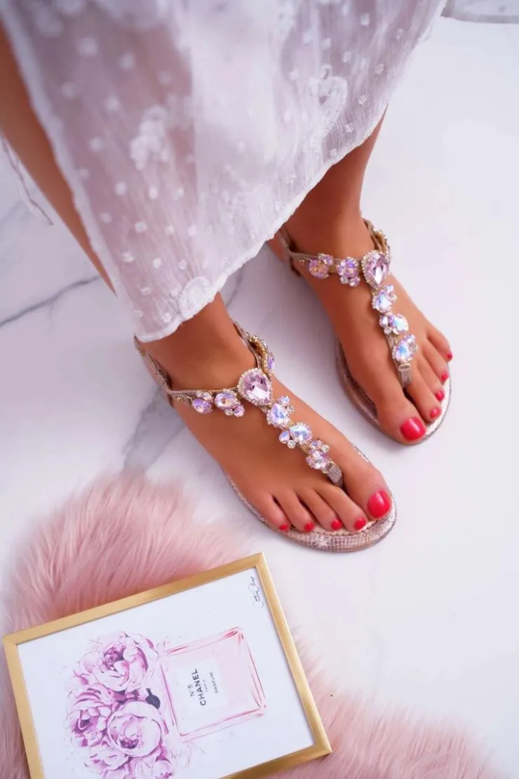 Damskie Boto Damskie Sandały z kamieniami Różowe Złoto Tenese
