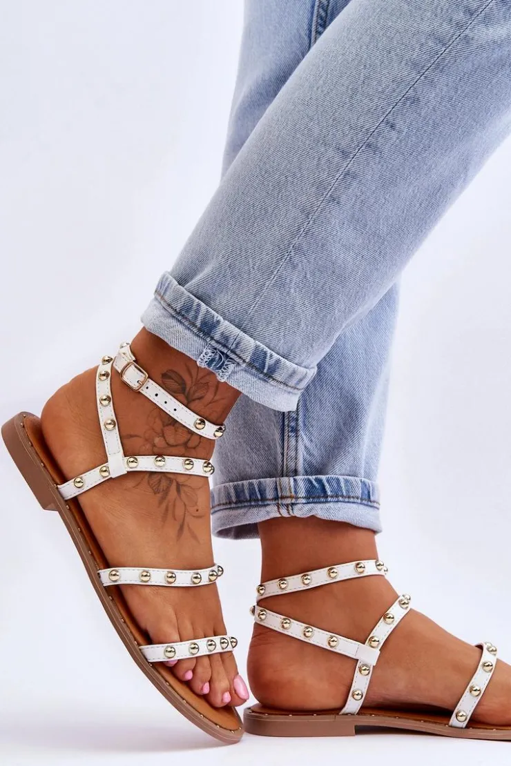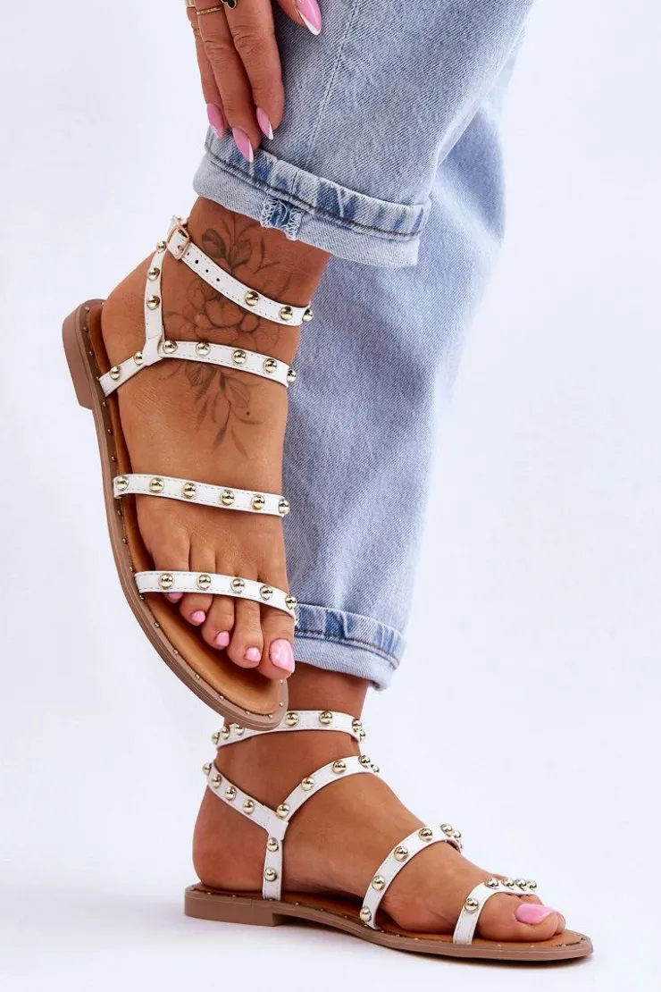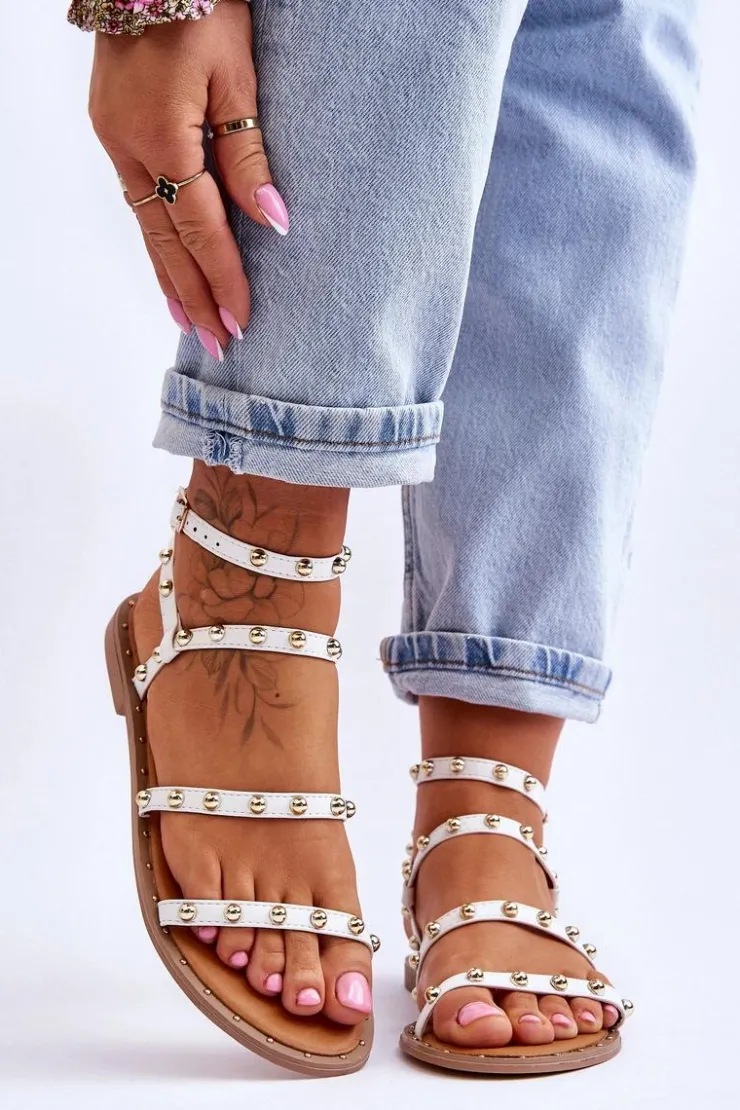 Damskie Boto Damskie Sandały Z Ozdobnymi Ćwiekami Białe Dorothy