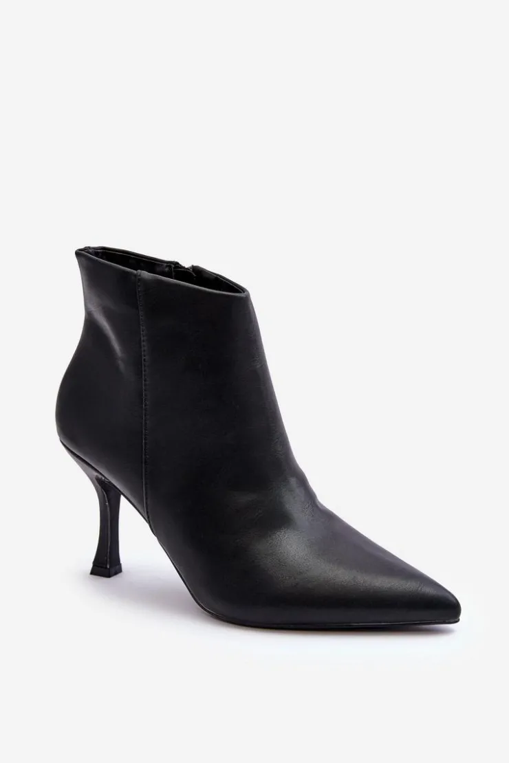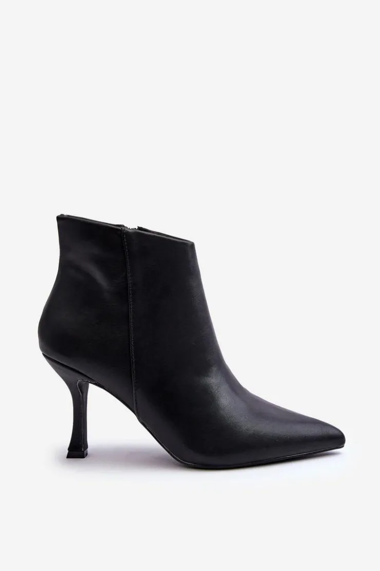 Eleganckie botki damskie zostały wykonane z eko skóry. Model osadzony na obcasie w postaci szpilki, z noskiem w szpic świetnie wysmukli nogi. Botki są zapinane z boku na suwak. Zapiętek w tych botkach jest usztywniany. Model ten świetnie sprawdzi się w wielu stylizacjach np.: do sukienek, spódnic czy spodni. Te botki koniecznie powinny znaleźć się w Twojej szafie! Przy wyborze rozmiaru prosimy sugerować się tabelą rozmiarów.