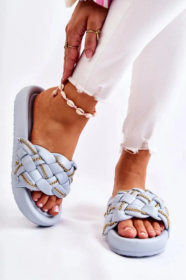 Damskie Boto Damskie Skórzane Klapki Z Łańcuszkiem Niebieskie Soline