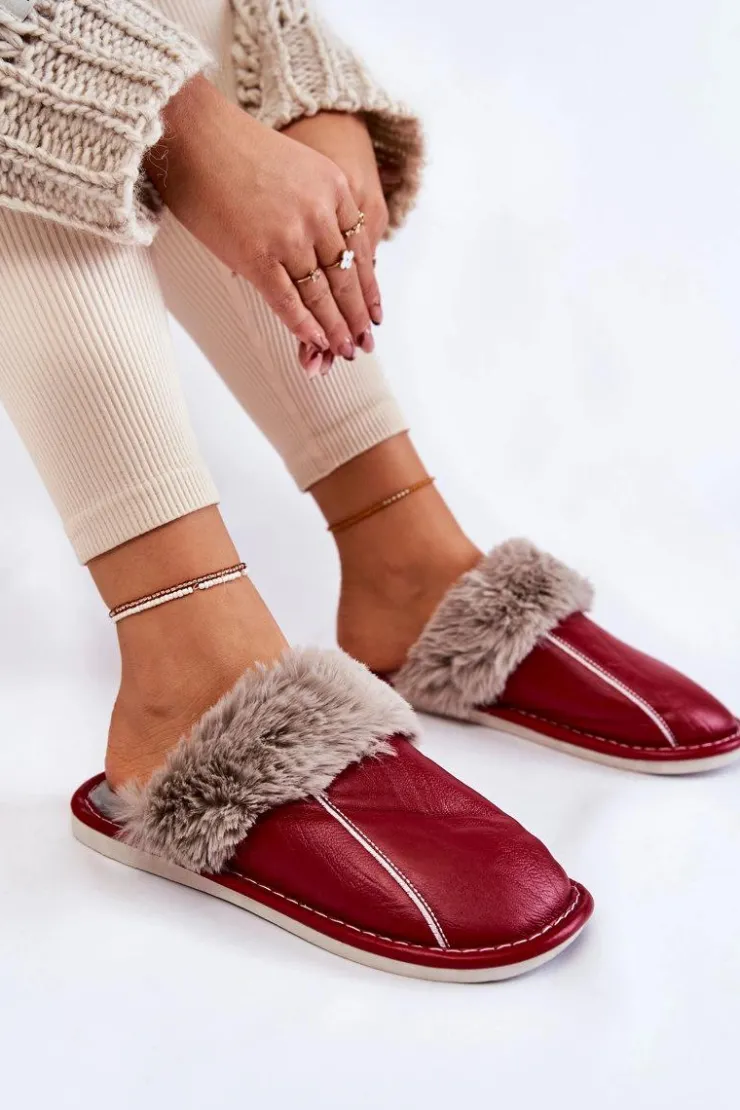 Damskie Boto Damskie Skórzane Papcie Z Futerkiem Czerwone Rossa