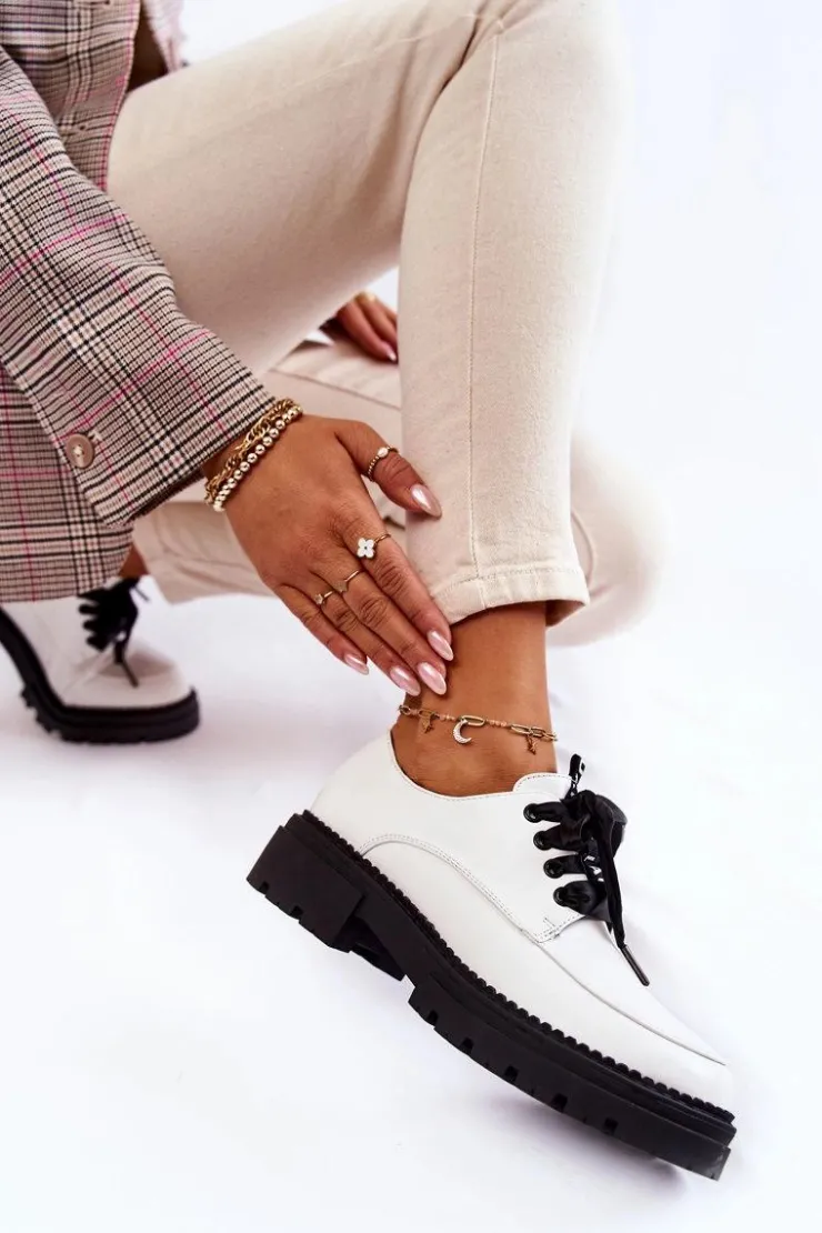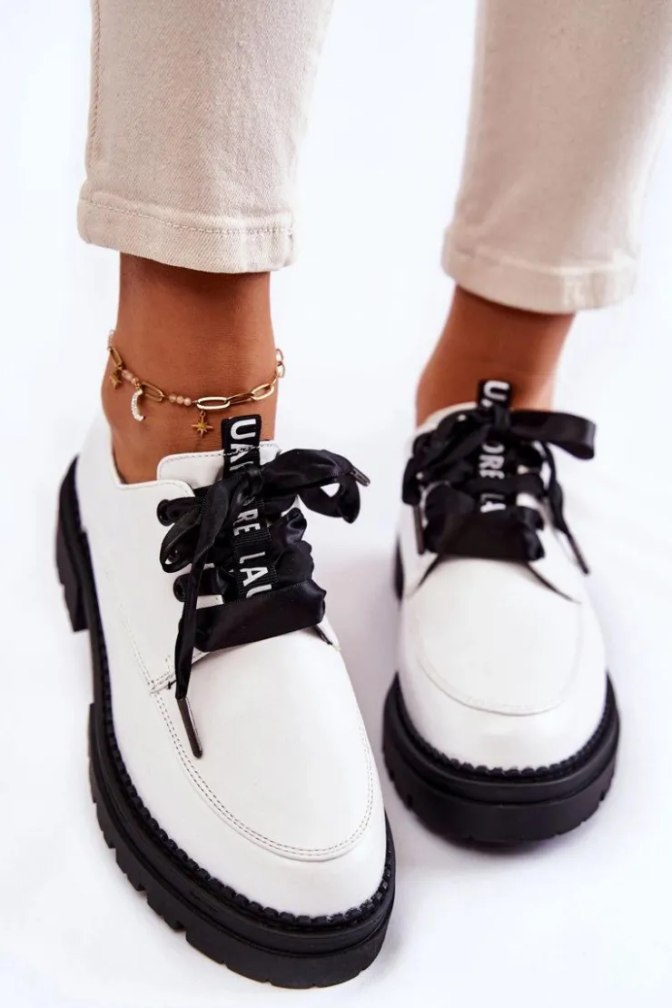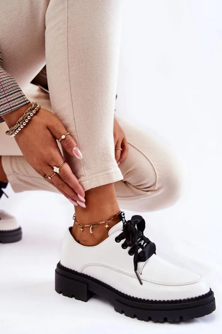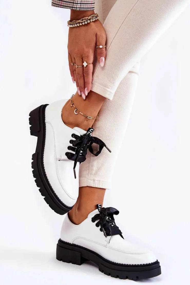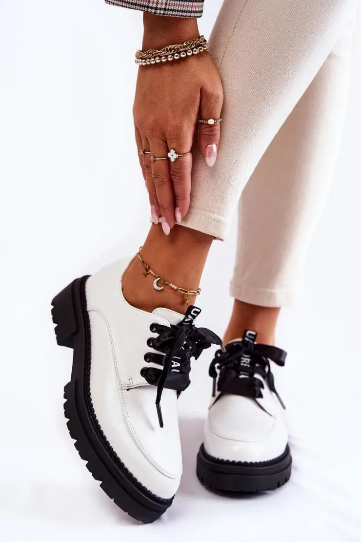 Modne półbuty damskie zostały wykonane z wysokiej jakości eko skórzanych materiałów. Miękka wkładka ze skóry naturalnej to gwarancja komfortu użytkowania nawet przez cały dzień. Sznurowanie w postaci wstążki sprawia, że te buty wyglądają naprawdę elegancko. Płaski, masywny obcas oraz delikatna platforma zapewnią stabilizację na każdym kroku. Ten model sprawdzi się w wielu stylizacjach! Podczas wyboru rozmiaru prosimy sugerować się tabelą rozmiarów.