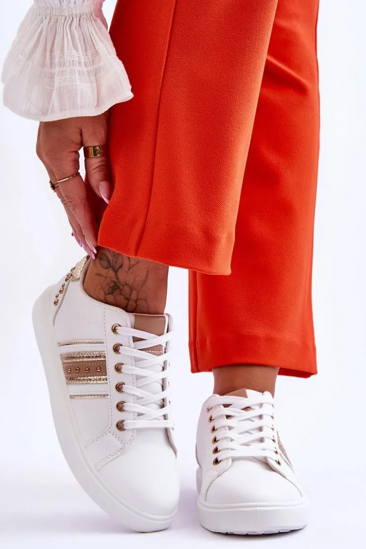 Damskie Boto Damskie Skórzane Sneakersy Z Ćwiekami Biało-Złote Dory