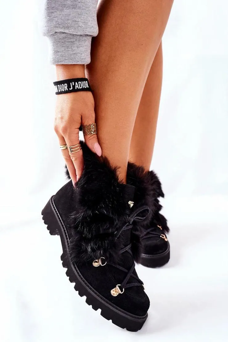 Przepiękne i modne botki marki Nicole. Buty w całości zostały wykonane z naturalnej welurowej skóry. Wnętrze botków ocieplone kocem obuwniczym, gwarantującym ciepło nawet w najmroźniejsze dni. Cholewka zdobiona pięknym sztucznym futerkiem. Fason klasycznie sznurowany, z pięknymi złotymi oczkami. Przy wyborze rozmiaru prosimy sugerować się tabelą rozmiarów.