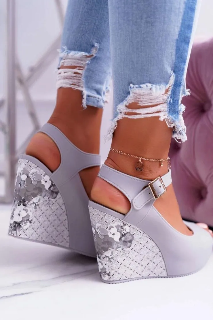Damskie Boto Damskie Szare Sandały Na Koturnie Nemesis