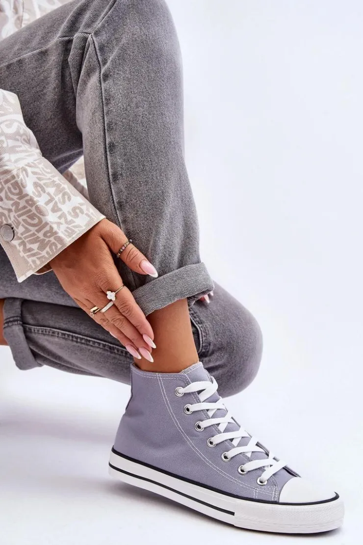 Damskie Boto Damskie Trampki Klasyczne Wysokie Szare Remos