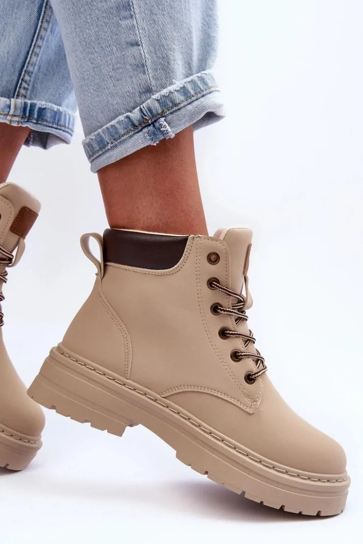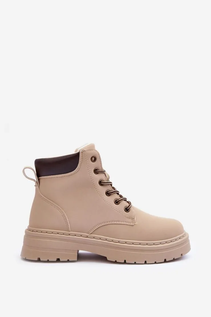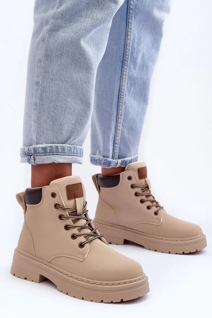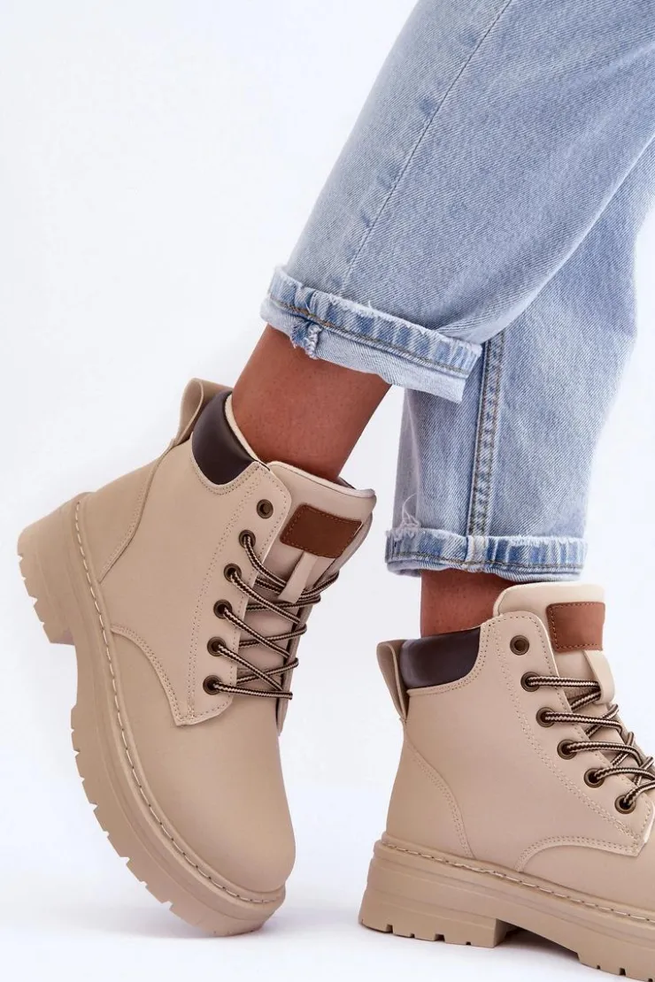 Buty zostały wykonane z miękkiej eko skóry. Osadzone na platformie i płaskim obcasie. Środek został ocieplony kocem obuwniczym. Trapery posiadają przeszycia na cholewce. Wiązanie sprawia, że można je dopasować do własnych potrzeb. Ten model traperów zachwyci każdego! Przy wyborze rozmiaru prosimy sugerować się tabelą rozmiarów.