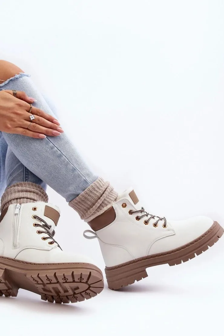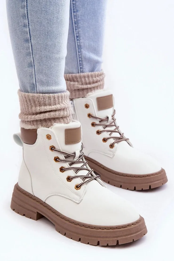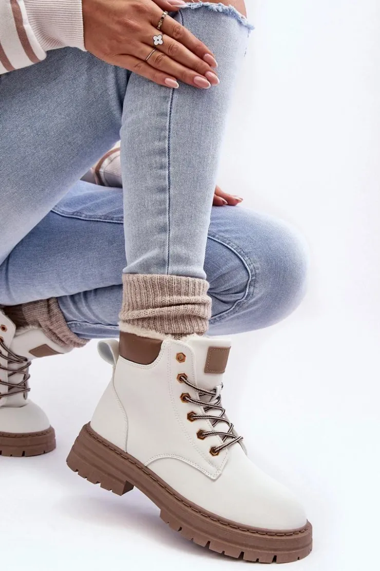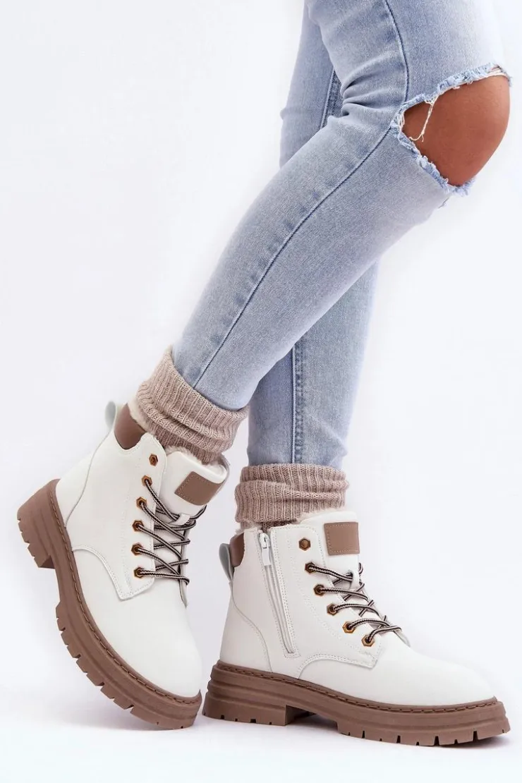 Klasyczne trapery damskie wykonane z eko skóry. Osadzone na platformie i płaskim obcasie. Zapinane na suwak z boku oraz dodatkowo posiadają sznurowanie. Środek ocieplony grubym futerkiem. Ten model traperów zachwyci każdego! Przy wyborze rozmiaru prosimy sugerować się tabelą rozmiarów.
