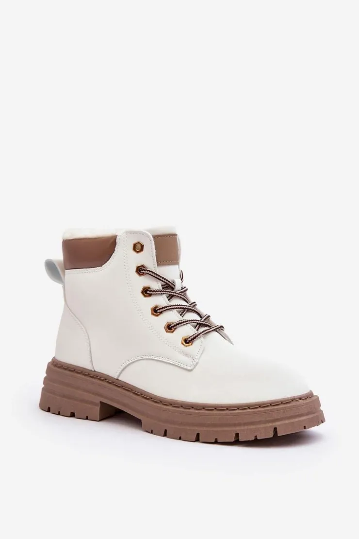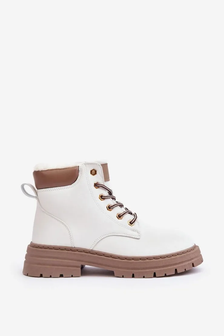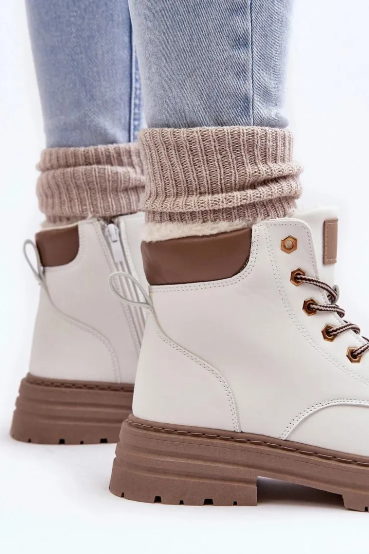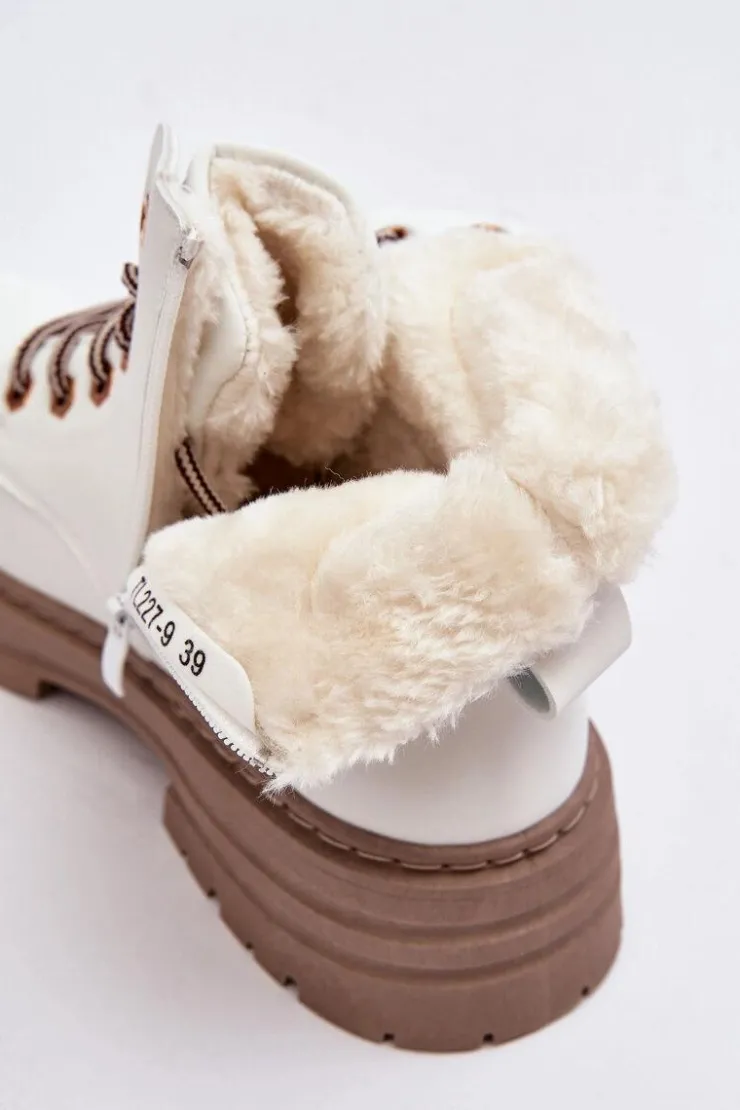 Klasyczne trapery damskie wykonane z eko skóry. Osadzone na platformie i płaskim obcasie. Zapinane na suwak z boku oraz dodatkowo posiadają sznurowanie. Środek ocieplony grubym futerkiem. Ten model traperów zachwyci każdego! Przy wyborze rozmiaru prosimy sugerować się tabelą rozmiarów.
