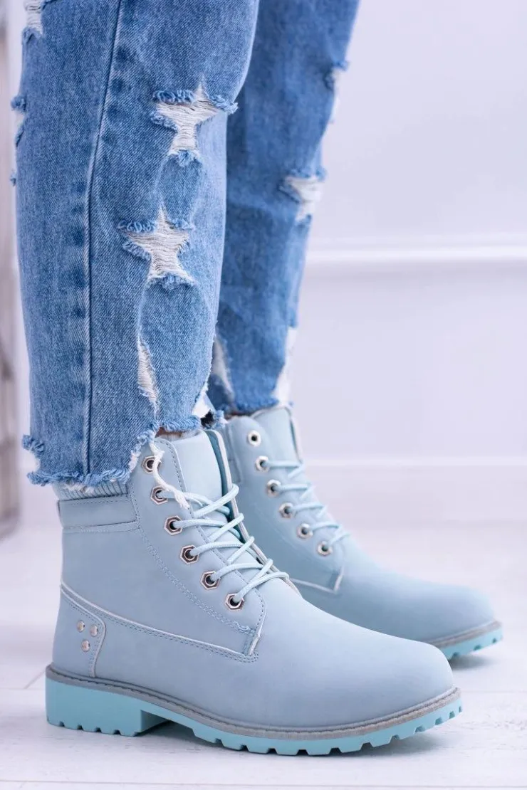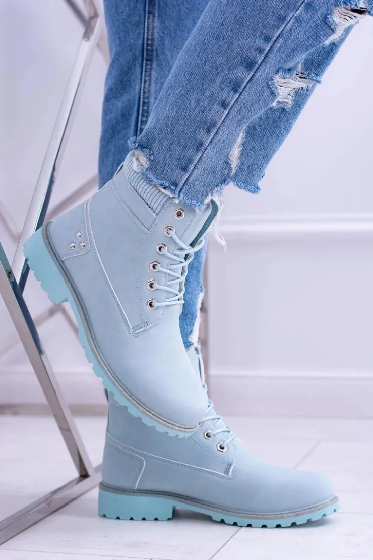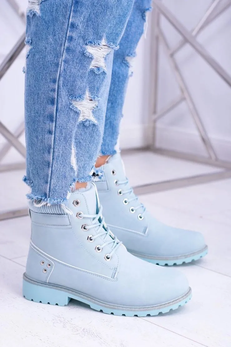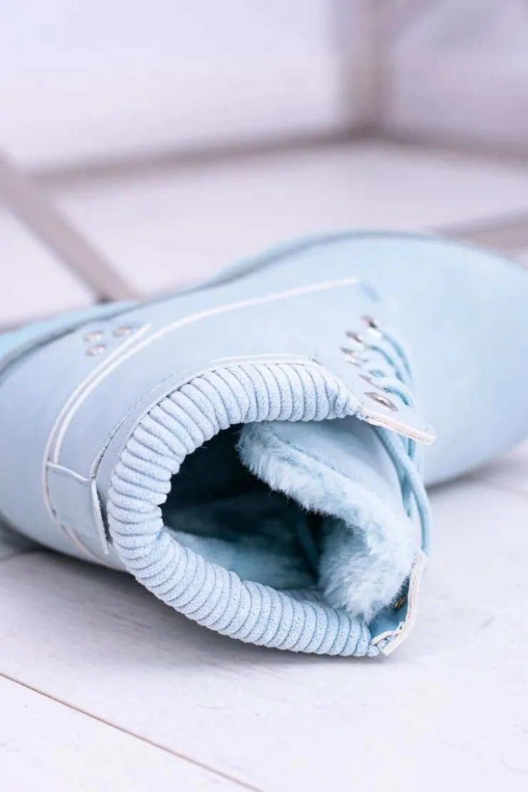 Damskie Boto Damskie Trapery Ocieplane Timberki Błękitne Oxford