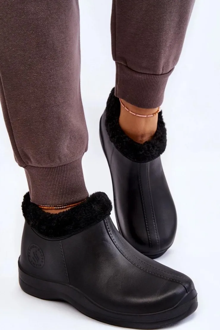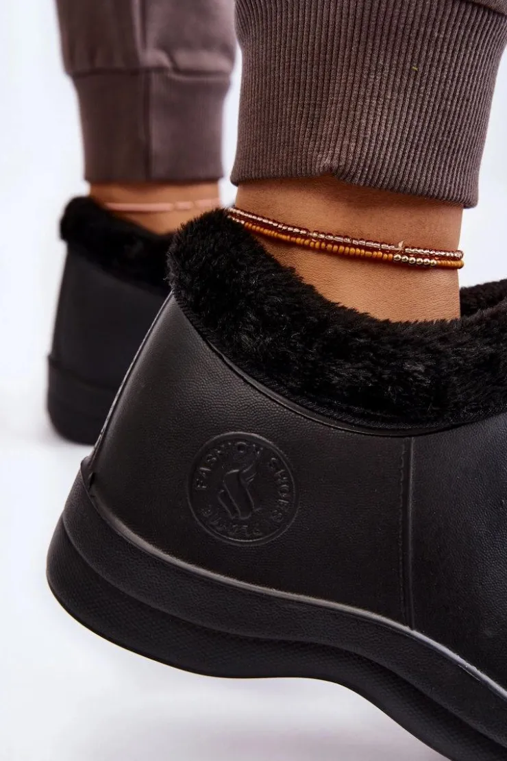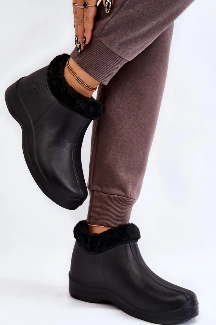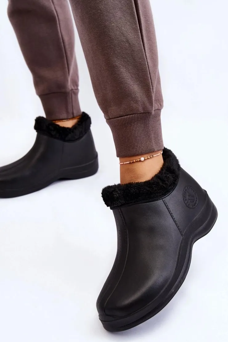 Klasyczne, damskie kalosze zostały wykonane z piankowego tworzywa typu EVA. Model ten został ocieplony eko futerkiem. Buty osadzone na płaskim obcasie oraz delikatnej platformie. Z boku znajduje się ozdobne, tłoczone logo. Idealne na spacery po mokrym podłożu czy do prac w ogrodzie. Przy wyborze rozmiaru prosimy sugerować się tabelą rozmiarów.