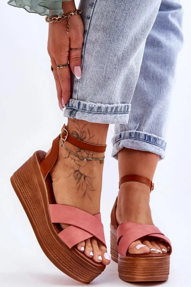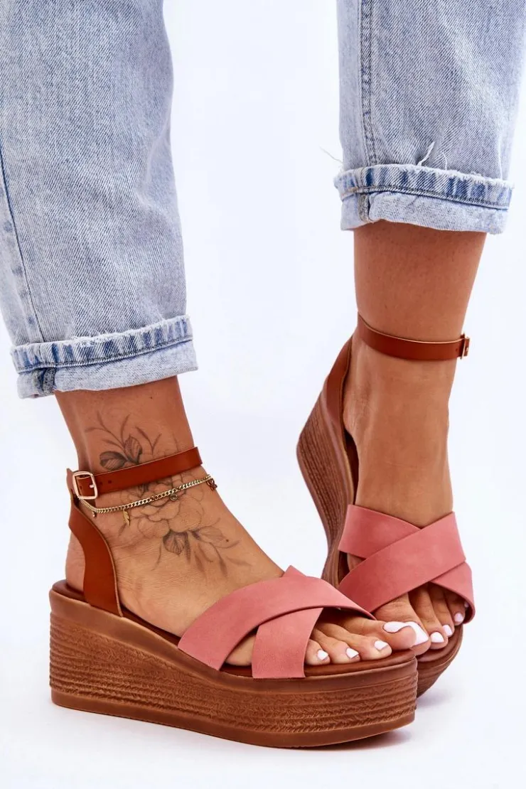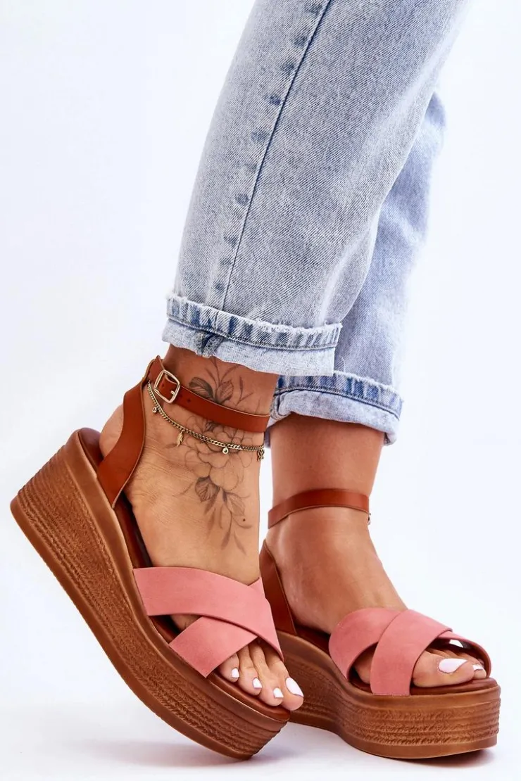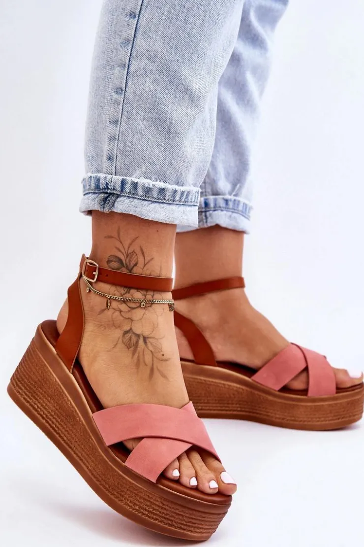 Klasyczne sandały damskie zostały osadzone na koturnie oraz platformie. Model ten posiada na przodzie dwa krzyżujące się paski. Miękka wkładka z eko skóry zapewni komfortowe użytkowanie obuwia. Sandałki posiadają platformę ozdobioną imitacją warkoczy. Zapinane na regulowany pasek ze sprzączką. Przy wyborze rozmiaru prosimy sugerować się tabelą rozmiarów.