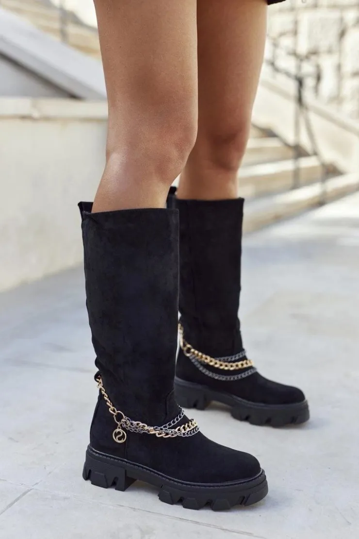 Kozaki do kolana wykonane z zamszowej skóry ekologicznej. Wnętrze ocieplane kocem obuwniczym. Gruba, antypoślizgowa podeszwa zapewnia bezpieczeństwo na każdej nawierzchni oraz dodatkowo izoluje przed zimnem. Przy wyborze rozmiarów prosimy sugerować się tabelą rozmiarów.