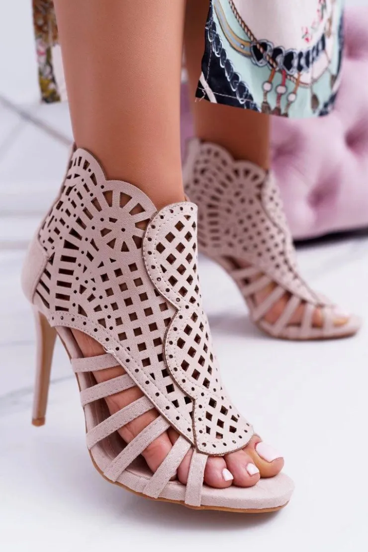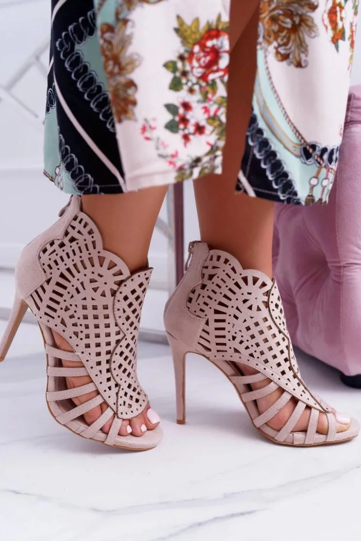Damskie Boto Damskie Zamszowe Beżowe Sandały na Szpilce Viviane