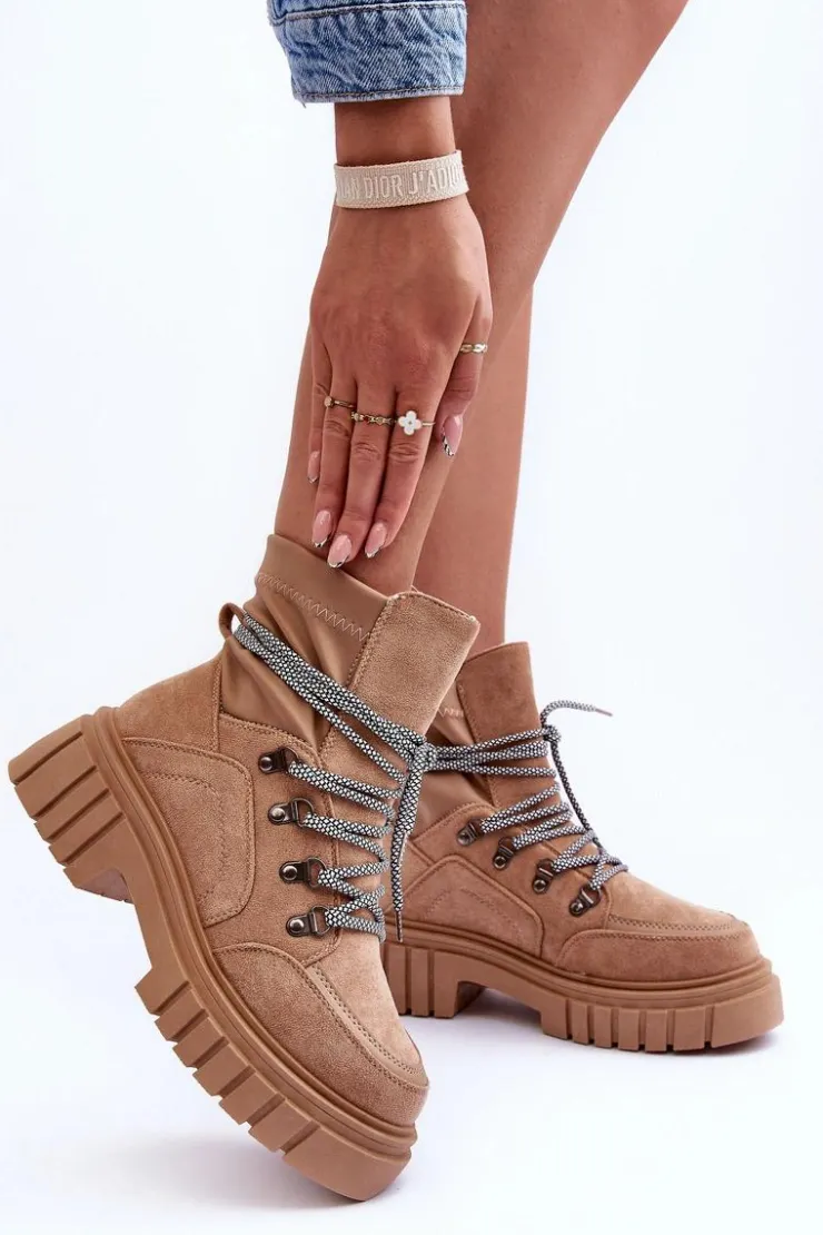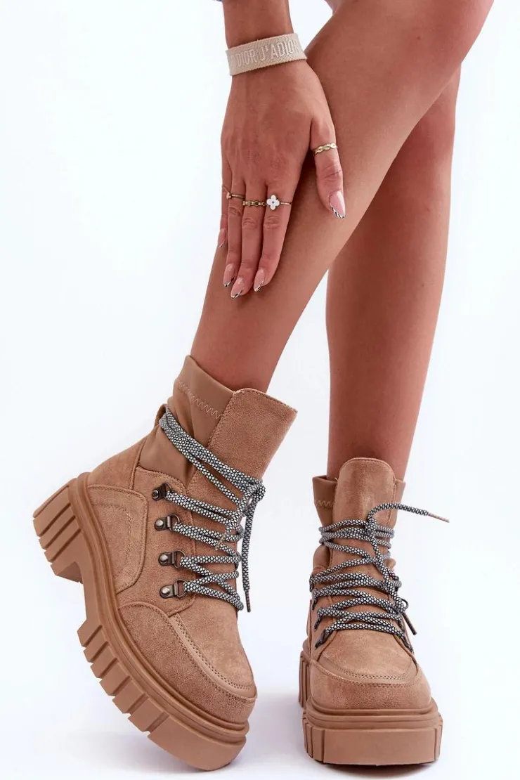 Damskie botki zostały osadzone na masywnym obcasie oraz platformie. Wykonane z eko zamszu. Cholewka za kostkę. Wewnątrz ocieplone kocem obuwniczym. Koniecznie powinnaś je mieć w swojej garderobie. Przy wyborze rozmiaru prosimy sugerować się tabelą rozmiarów.