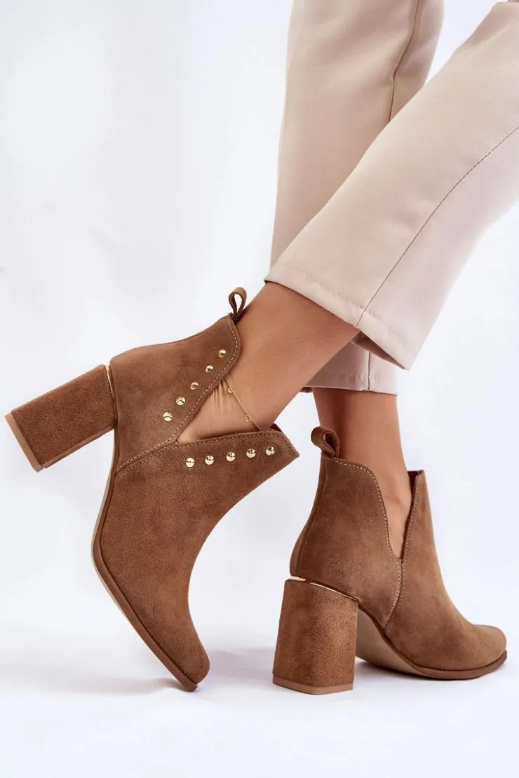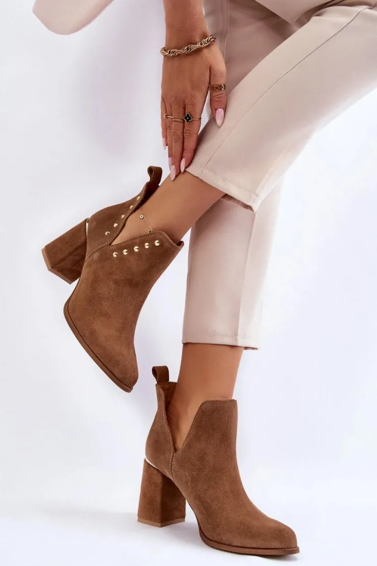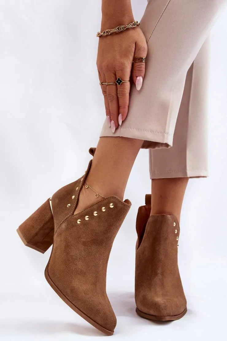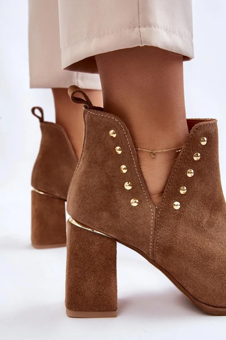Damskie Boto Damskie Zamszowe Botki Z Wycięciami Lewski 3075 Camel