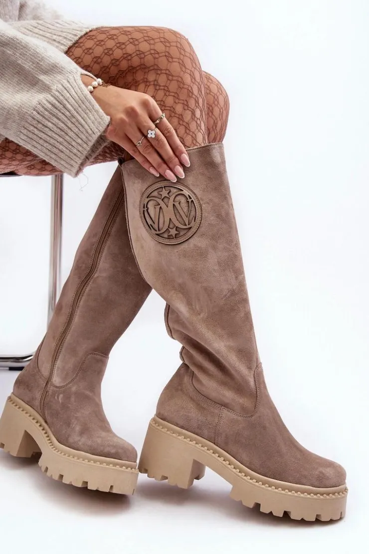 Kozaki damskie wykonane z wysokiej jakości skóry naturalnej. Zapinane na suwak znajdujący się na boku. Osadzone na platformie oraz masywnym, płaskim obcasie. Nie posiadają ocieplenia. Noski zaokrąglone. Zapiętek jest usztywniony. Wygodny i komfortowy w użytkowaniu model. Ten klasyczny fason świetnie sprawdzi się w wielu stylizacjach! Przy wyborze rozmiaru prosimy sugerować się tabelą rozmiarów.