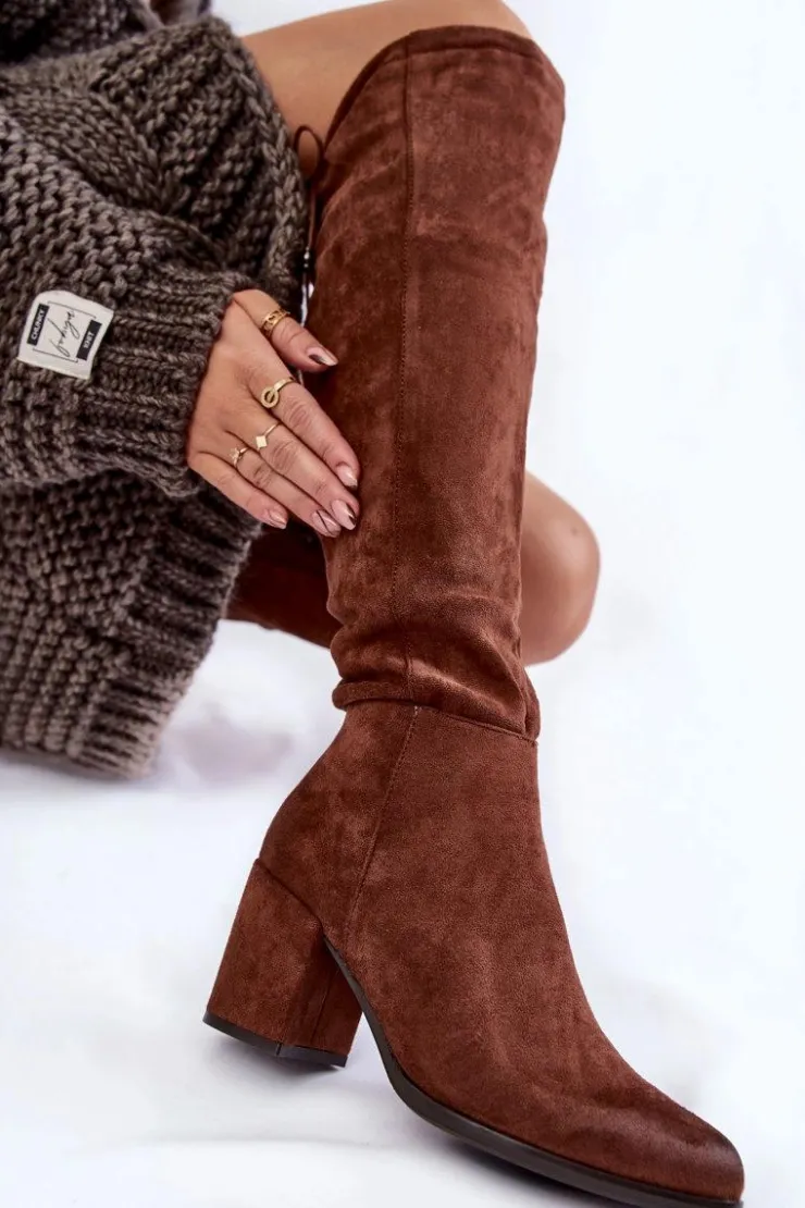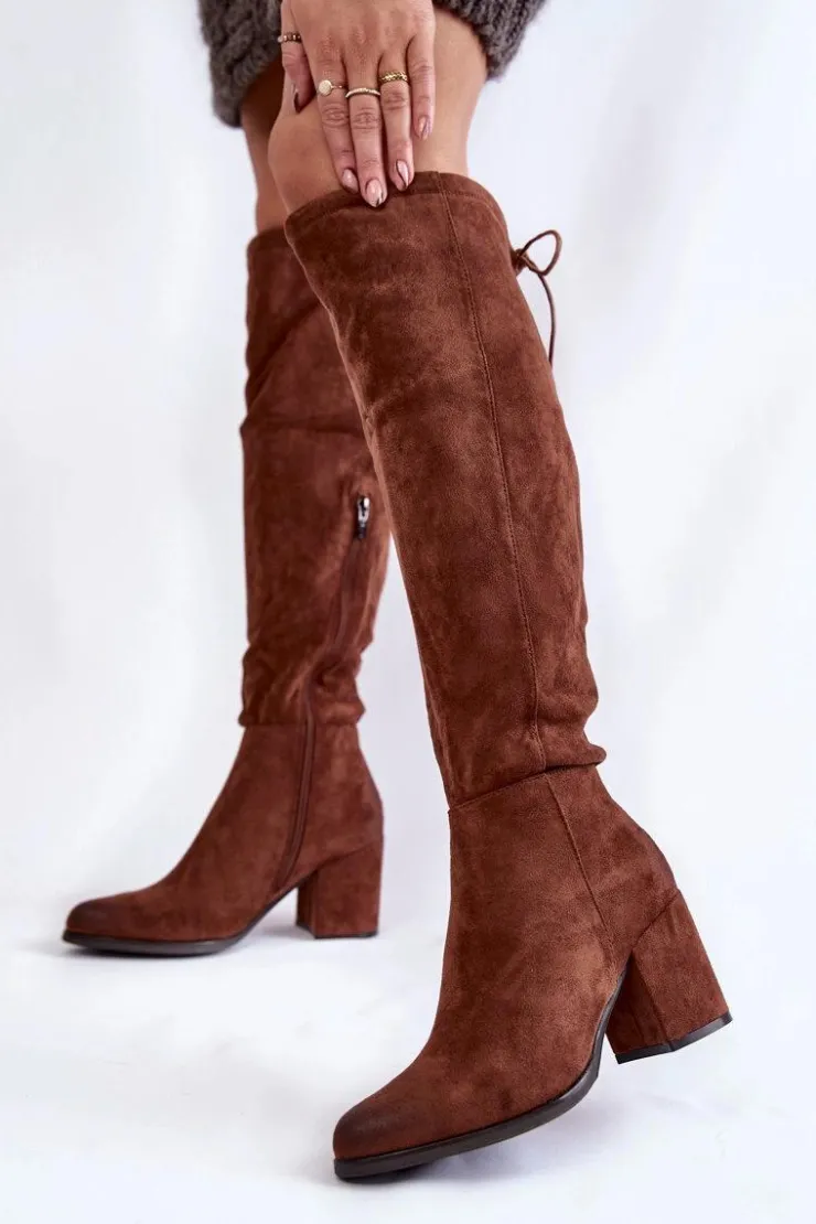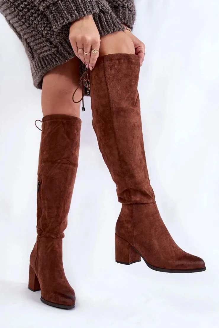 Damskie Boto Damskie Zamszowe Kozaki Za Kolano La.Fi 270056FX-SU Ciemnobrązowe