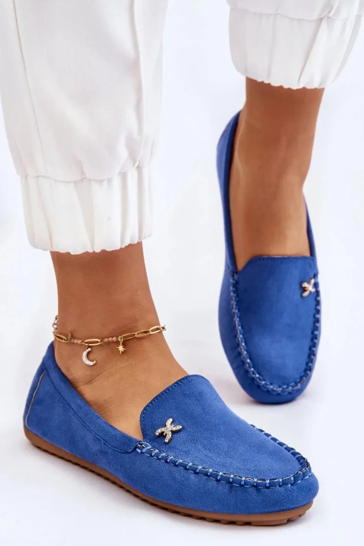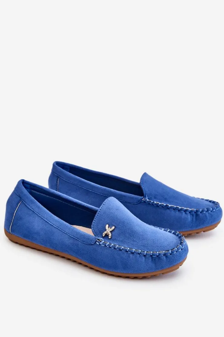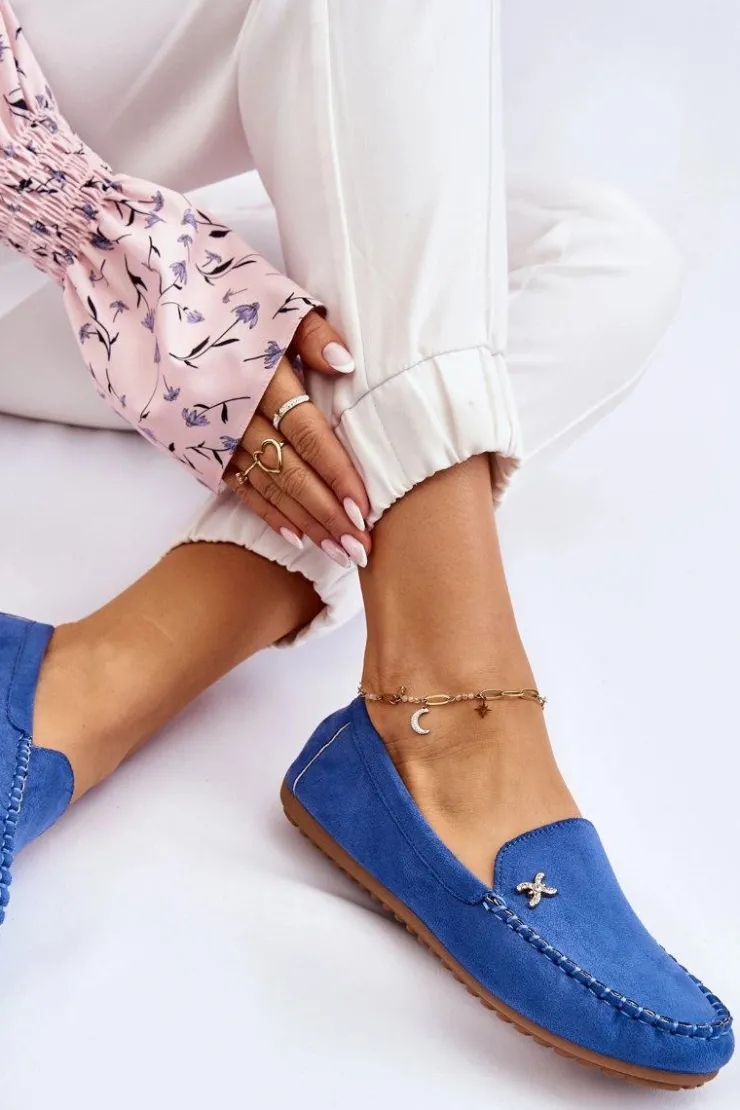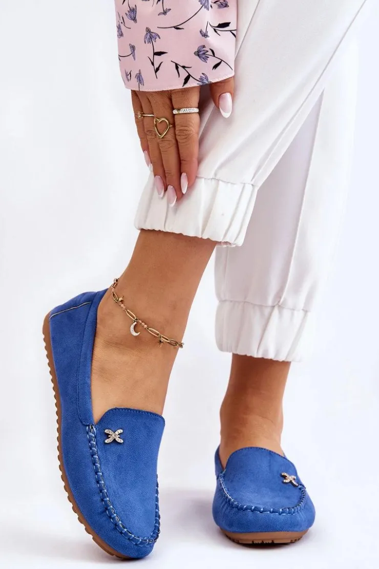 Damskie Boto Damskie Zamszowe Mokasyny Z Ozdobą Niebieskie Leah