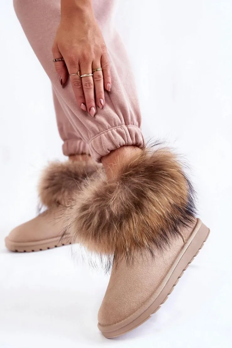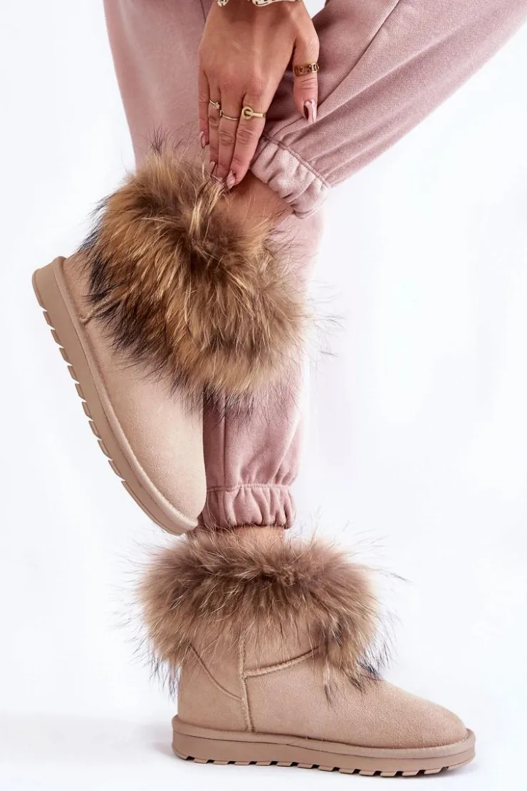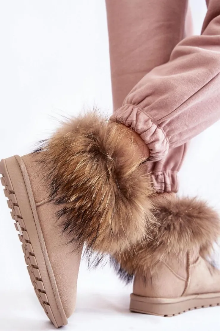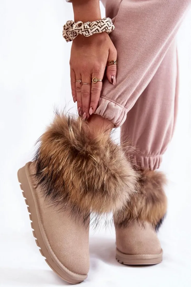 Damskie Boto Damskie Zamszowe Śniegowce Z Futerkiem Jasnobeżowe Alexa