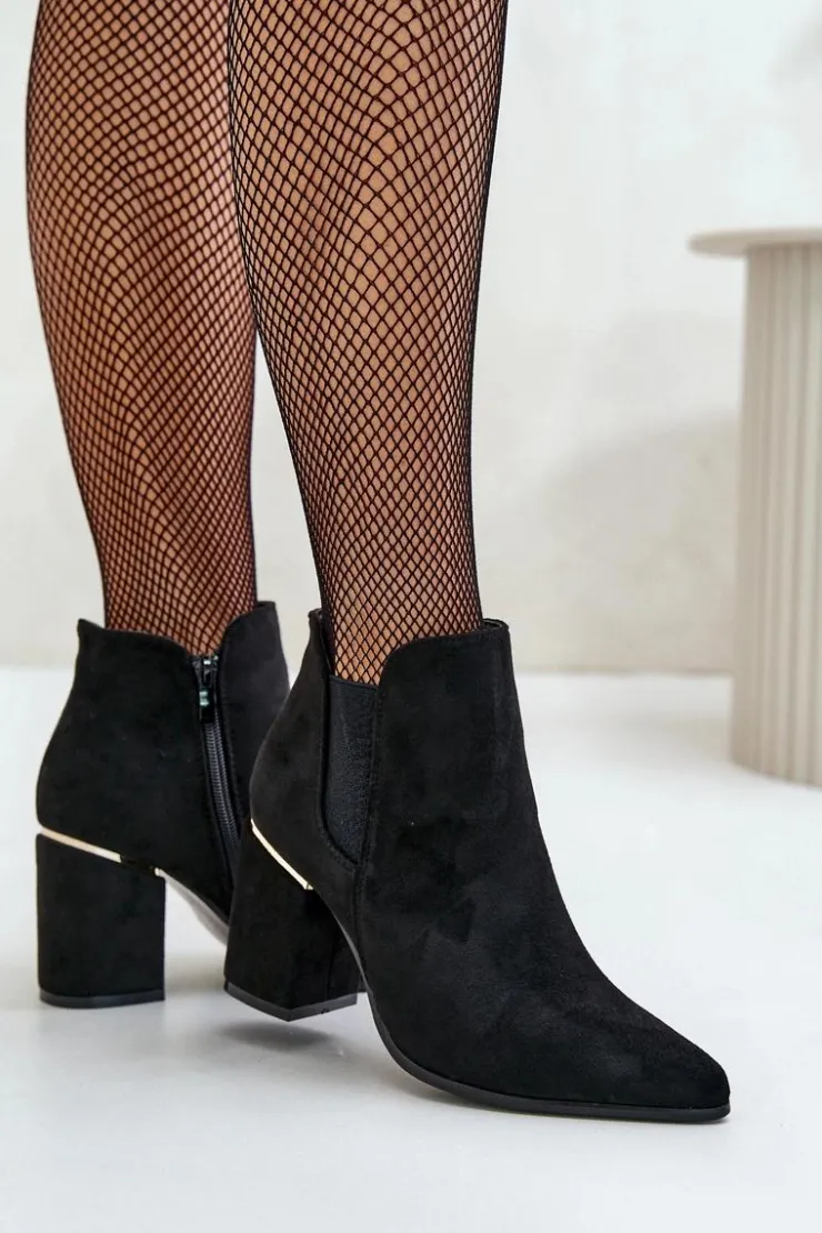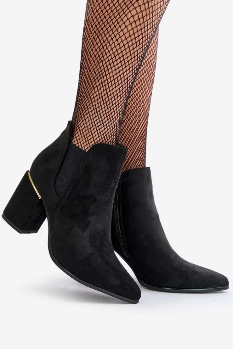 Botki damskie wykonane z miłego w dotyku eko zamszu. Osadzone na obcasie w formie słupka. Zamek umieszczony z boku cholewki ułatwia zakładanie, a usztywniany zapiętek dodaje butom trwałości i wsparcia. Wnętrze ocieplone kocem obuwniczym. Noski w szpic optycznie wysmuklą nogi. Koniecznie sprawdź także pozostałe modele botków dostępnych w naszej ofercie. Przy wyborze rozmiaru prosimy sugerować się tabelą rozmiarów.