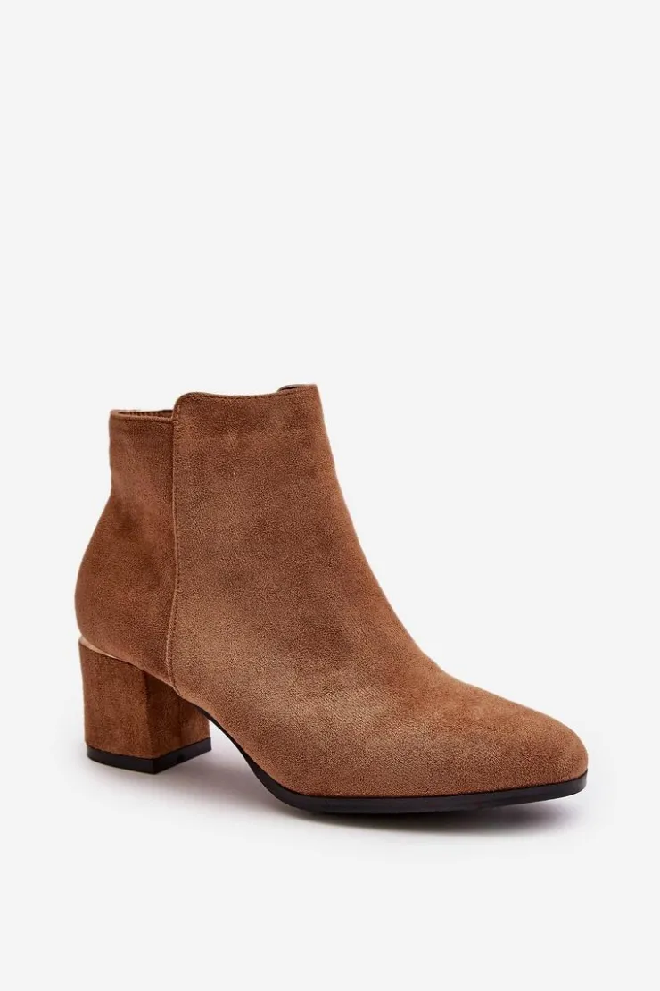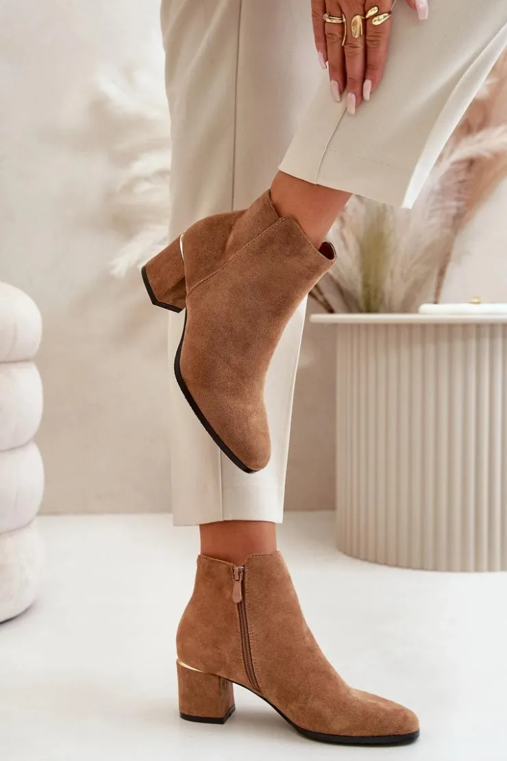Klasyczne botki wykonane z eko zamszu, które wyróżniają się eleganckim i ponadczasowym stylem. Zapinane na zamek, co ułatwia ich zakładanie i zdejmowanie, oferują wygodę i praktyczność. Zaokrąglone noski dodają im subtelności, czyniąc je idealnym dodatkiem do wielu różnych stylizacji. Przy wyborze rozmiaru prosimy sugerować się tabelą rozmiarów.