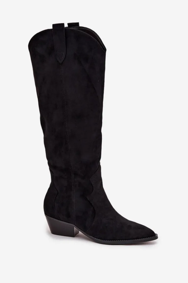 Stylowe kozaki kowbojki damskie z eko zamszu to absolutny hit sezonu! Model osadzony na ściętym obcasie i zakończony szpiczastym noskiem doskonale podkreśla nogę i dodaje stylizacji charakteru. Buty są wsuwane, a dodatkowy zamek na dole ułatwia zakładanie. Wykonane z miękkiego eko zamszu, idealnie wpisują się w modne, casualowe looki – świetnie wyglądają z sukienkami, spódnicami i jeansami typu skinny. Przy wyborze rozmiaru prosimy sugerować się poniższą tabelą rozmiarów.