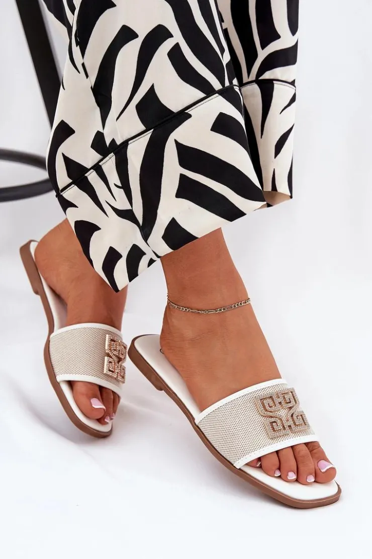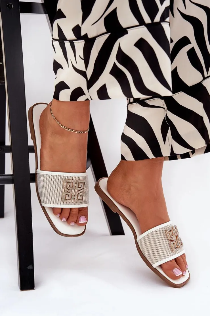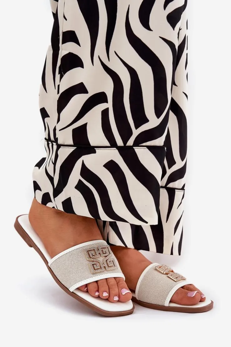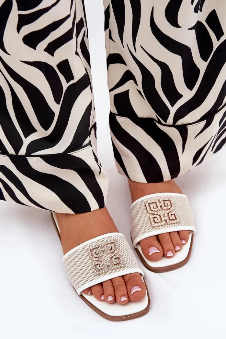 Damskie klapki na płaskim obcasie gwarantują komfort noszenia przez cały dzień. Ozdoba z lśniącymi cyrkoniami dodaje im delikatnego blasku. Ten model z pewnością podkreśli unikalny charakter Twojej letniej garderoby. Przy wyborze rozmiaru prosimy sugerować się tabelą rozmiarów.