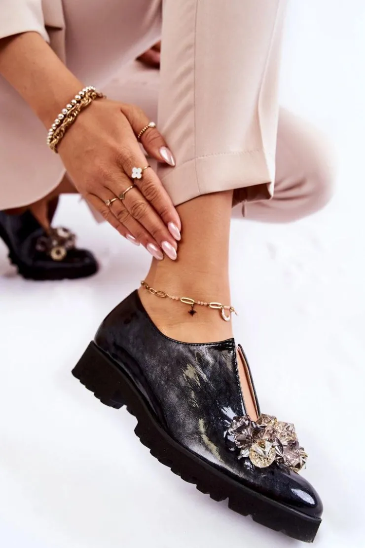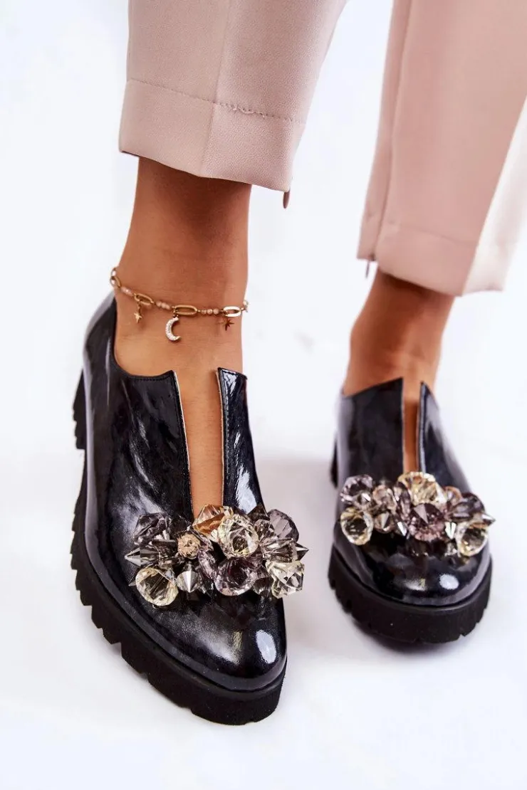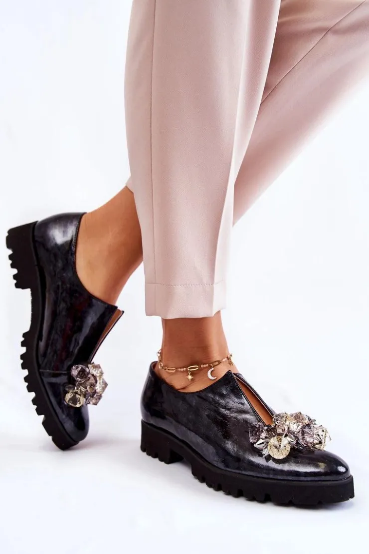Eleganckie półbuty są wykonane z naturalnej skóry. Miękka wkładka daje poczucie komfortu na każdym kroku. Płaski obcas oraz traperowa podeszwa gwarantuje stabilność. Piękna ozdoba przyszyta na przodzie oraz rozcięcie sprawia, że są naprawdę wyjątkowe. Koniecznie sprawdź także pozostałe modele półbutów dostępnych w naszej ofercie! Przy wyborze rozmiaru prosimy sugerować się tabelą rozmiarów, która dostępna jest po najechaniu bądź kliknięciu w dany rozmiar.