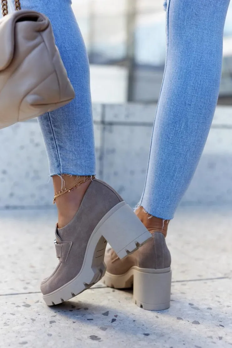 Cudowne półbuty na obcasie z cholewką wykonaną ze skóry naturalnej zamszowej. Wnętrze zostało pokryte skórą naturalną oraz materiałem tekstylnym, dzięki temu są bardzo komfortowe w użytkowaniu. Wkładka ze skóry naturalnej, a podeszwa wykonana z gumowego tworzywa. Stylowy obcas w postaci szerokiego słupka zapewni stabilizację na każdym kroku. Lustrzana ozdoba na przodzie. Zapiętek jest usztywniany. Dodatkowo pod językiem znajduje się gumka ściągająca, która sprawi, że but będzie idealnie dopasowany do stopy. Przy wyborze rozmiaru prosimy sugerować się tabelą rozmiarów.