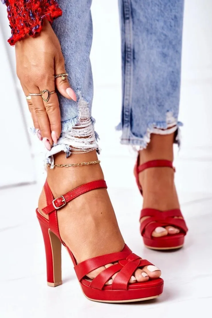 Klasyczne i eleganckie sandały na słupku. Buty wykonane są w całości ze skóry ekologicznej. Przy wyborze rozmiaru prosimy sugerować się tabelą rozmiarów