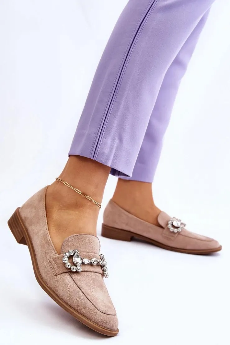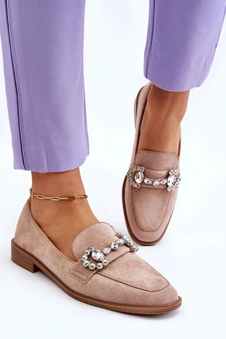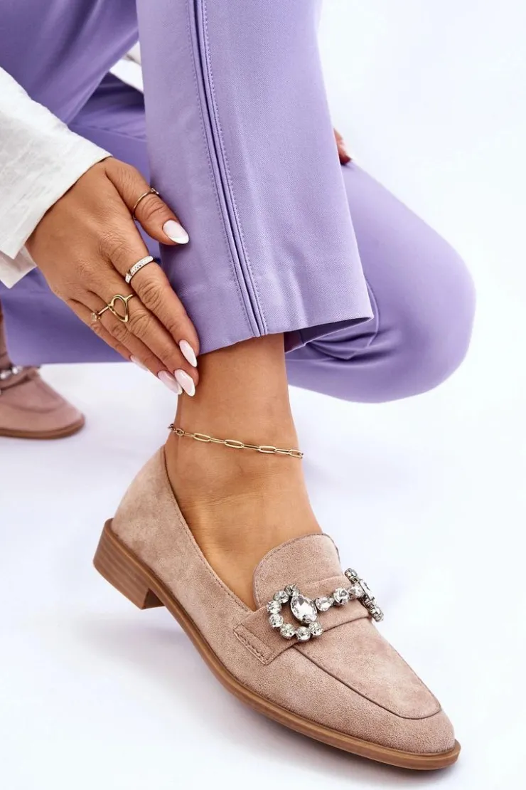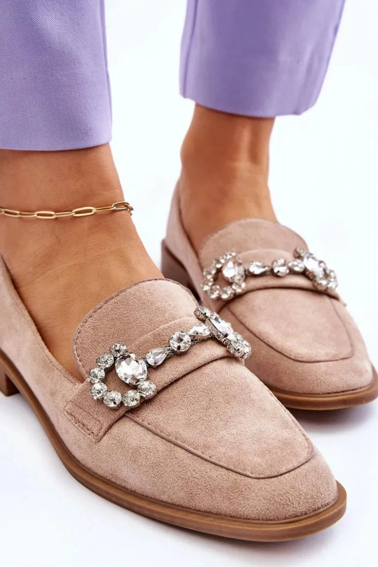 Damskie mokasyny z miękką wkładką z eko skóry. Buty te posiadają elegancką ozdobę na przodzie w postaci imitacji kryształów. Osadzone na płaskim obcasie z antypoślizgową podeszwą. Klasyczny model, idealny do wielu stylizacji! Koniecznie sprawdź także pozostałe modele mokasyn dostępne naszej ofercie! Przy wyborze rozmiaru prosimy sugerować się tabelą rozmiarów.