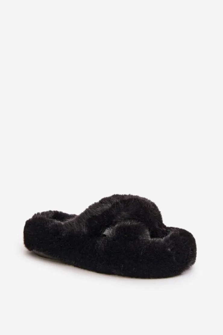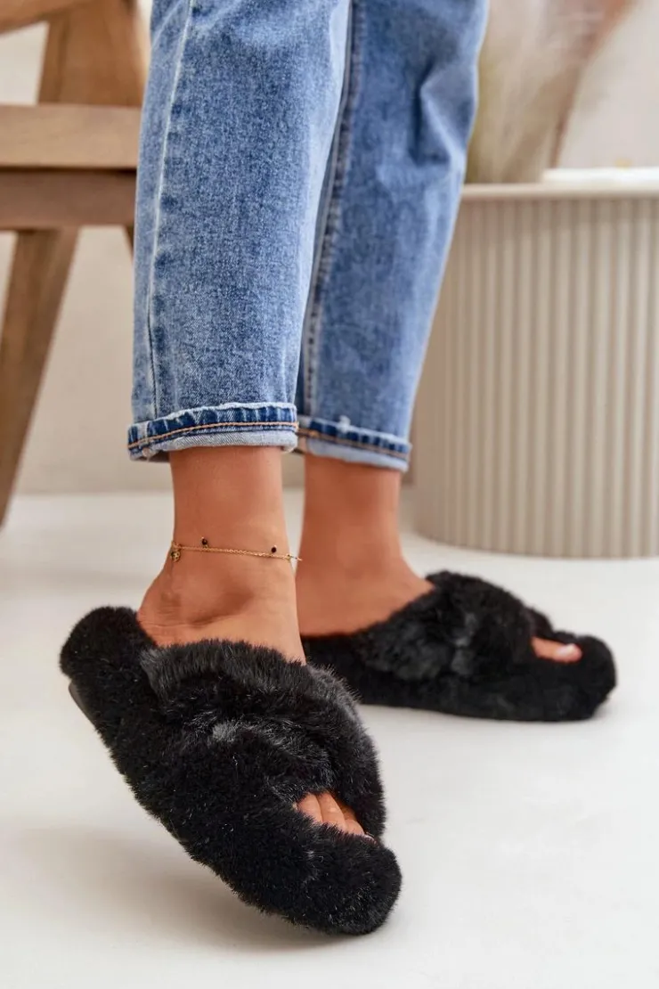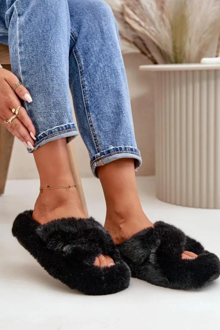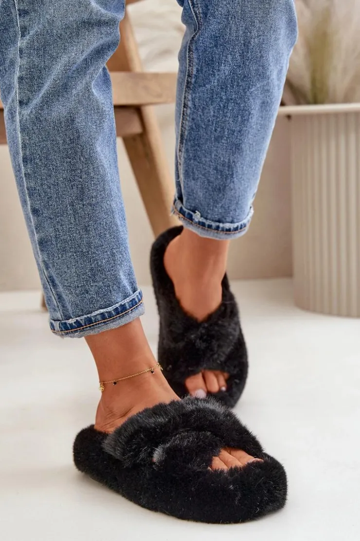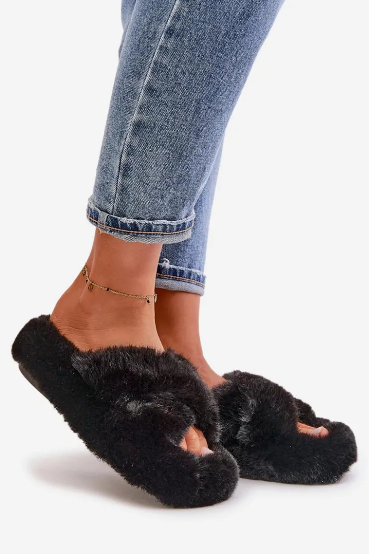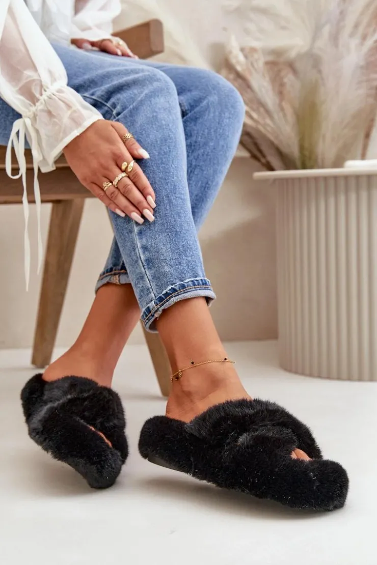 Damskie Boto Futrzane Kapcie Damskie Na Grubej Podeszwie Czarne Lavitera