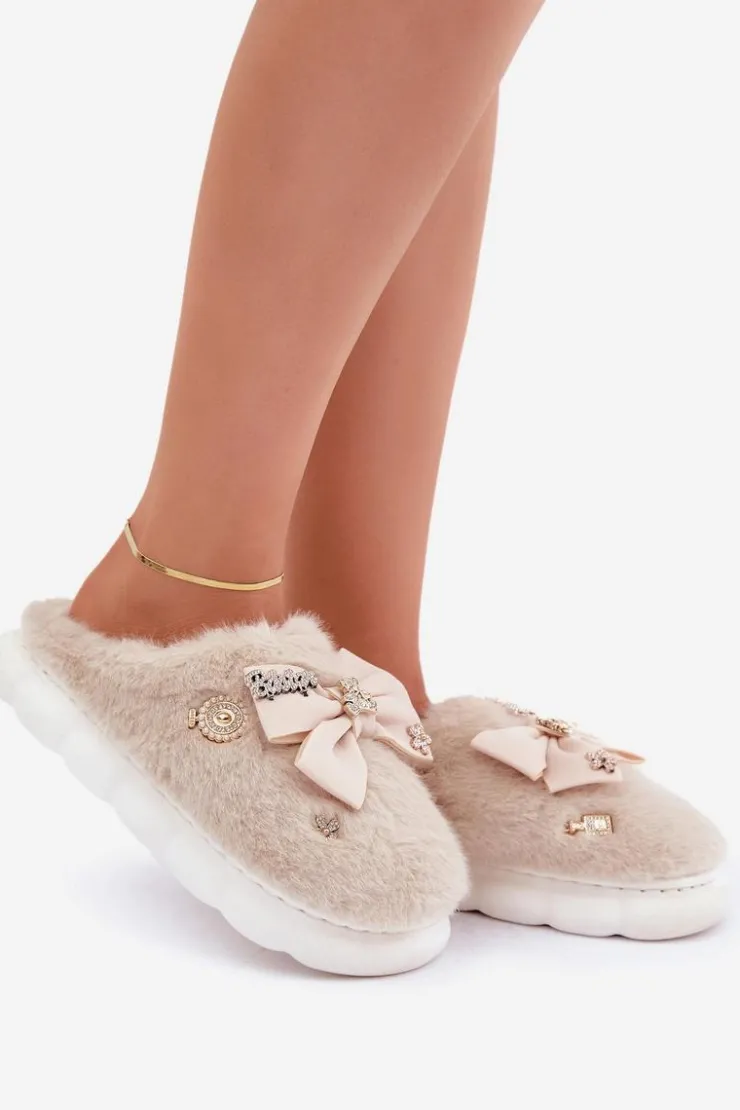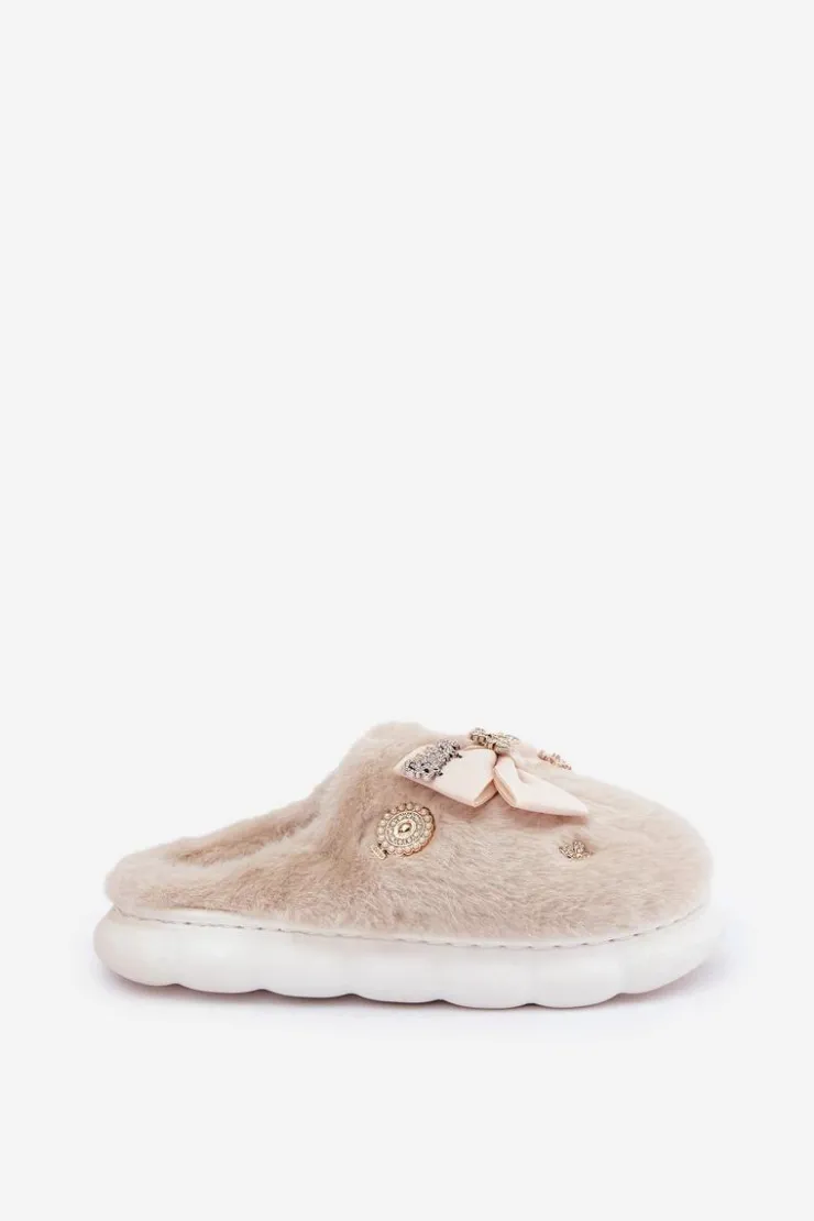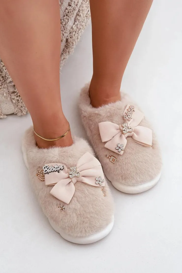 Urocze futrzane kapcie, które łączą wygodę i styl! Miękkie futerko otula stopy, zapewniając ciepło i komfort. Dodatkowego wdzięku dodają przypinki oraz kokardka. Idealne do noszenia w domu, by poczuć się stylowo i przytulnie nawet w chłodne dni. Przy wyborze rozmiaru prosimy sugerować się tabelą rozmiarów.