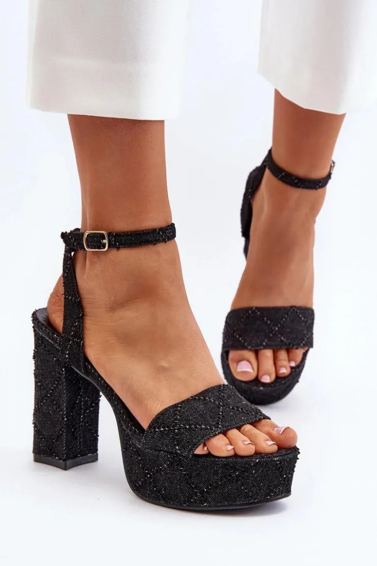 Modne sandały damskie wykonane są z materiału tekstylnego. Obcas w formie słupka dodaje im elegancji i wyrazistości. Zapinane na regulowany pasek ze sprzączką, który zapewnia odpowiednie dopasowanie do stopy. Dodatkowo miękka wkładka z eko skóry gwarantuje wygodę nawet podczas długiego noszenia. To idealny wybór na letnie dni! Przy wyborze rozmiaru prosimy sugerować się tabelą rozmiarów.