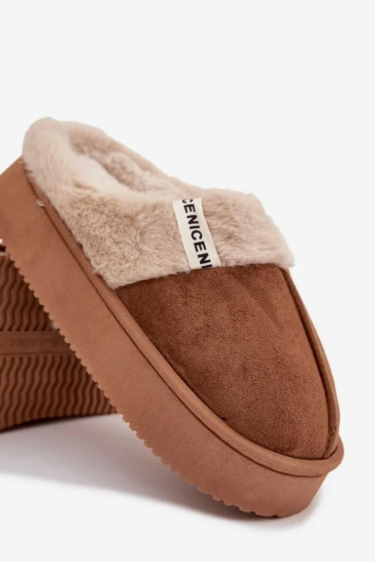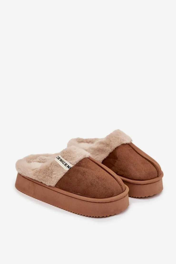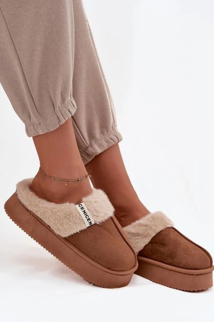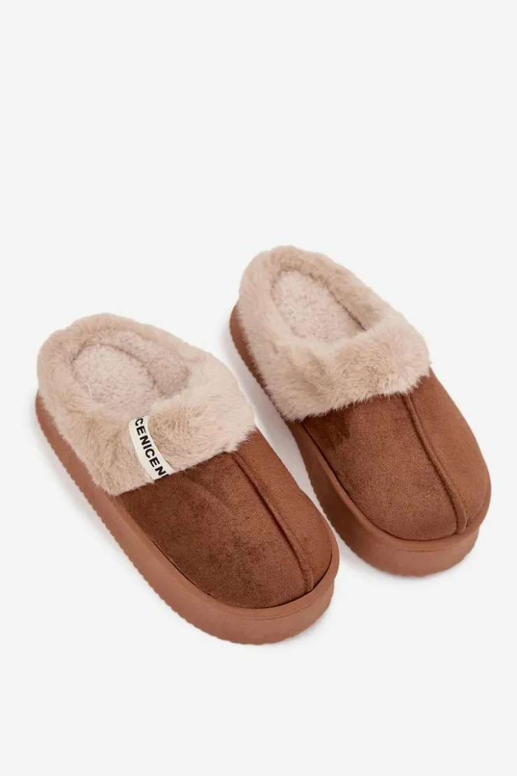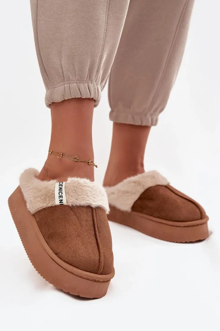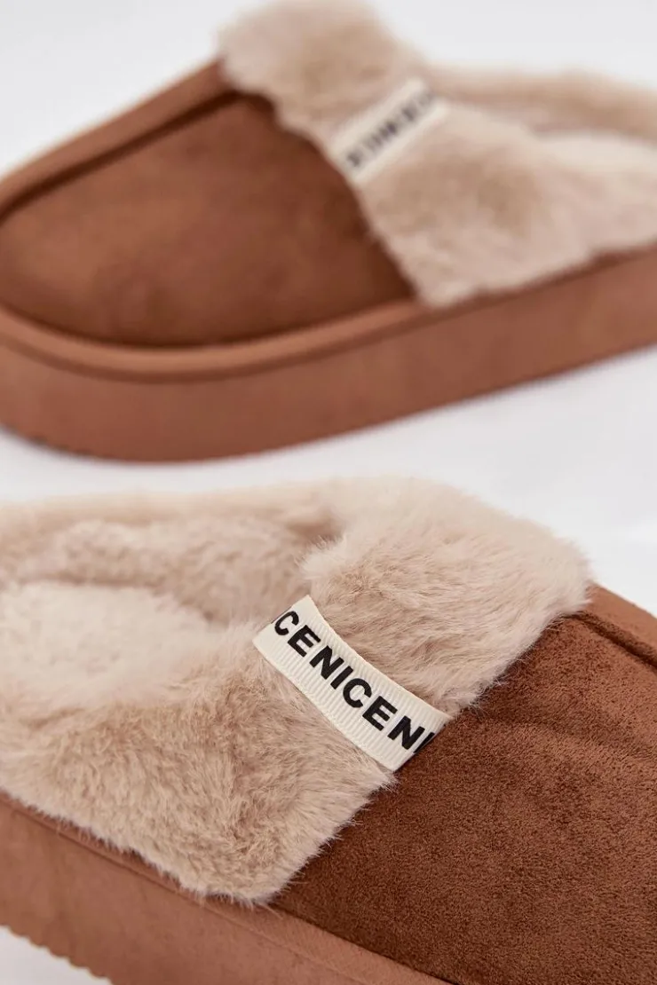 Kapcie damskie wykonane z miękkiej eko zamszowej tkaniny to idealna propozycja dla kobiet ceniących ciepło i wygodę. Model osadzony został na grubej podeszwie, która zapewnia stabilność oraz komfort podczas chodzenia po domu. Górną część ozdobiono przyjemnym w dotyku futerkiem i stylowym paseczkiem z napisem, co nadaje całości modnego i przytulnego charakteru. Wnętrze kapci zostało ocieplone, dzięki czemu doskonale chronią stopy przed chłodem. Przy wyborze rozmiaru prosimy sugerować się tabelą rozmiarów.