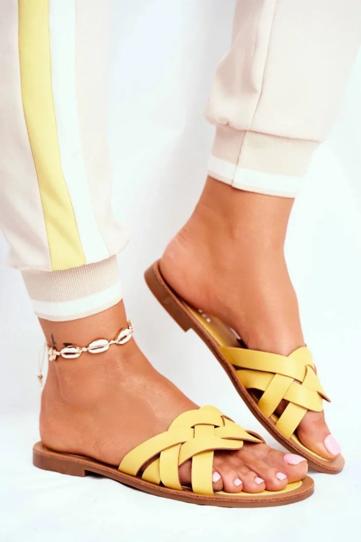 Damskie Boto Klapki Damskie Eleganckie Żółte Mariah