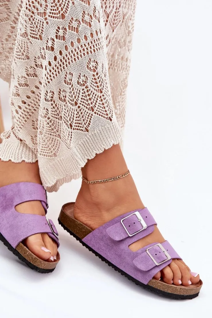 Klapki damskie z eko zamszu to połączenie stylu i wygody na co dzień. Wyposażone w dwa regulowane paski z klamrami, które umożliwiają idealne dopasowanie do stopy. Profilowana wkładka zapewnia komfort, a korkowa platforma dodaje lekkości i stabilności. Doskonałe na codzienne stylizacje, łączą funkcjonalność z modnym wyglądem. Przy wyborze rozmiaru prosimy sugerować się tabelą rozmiarów.