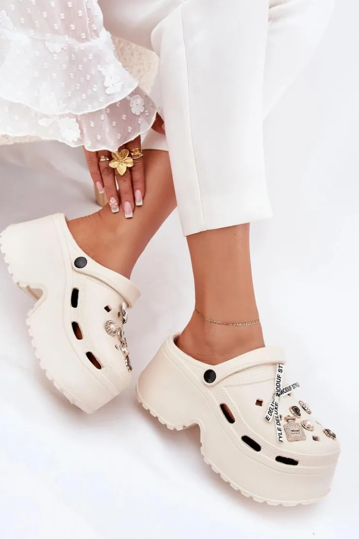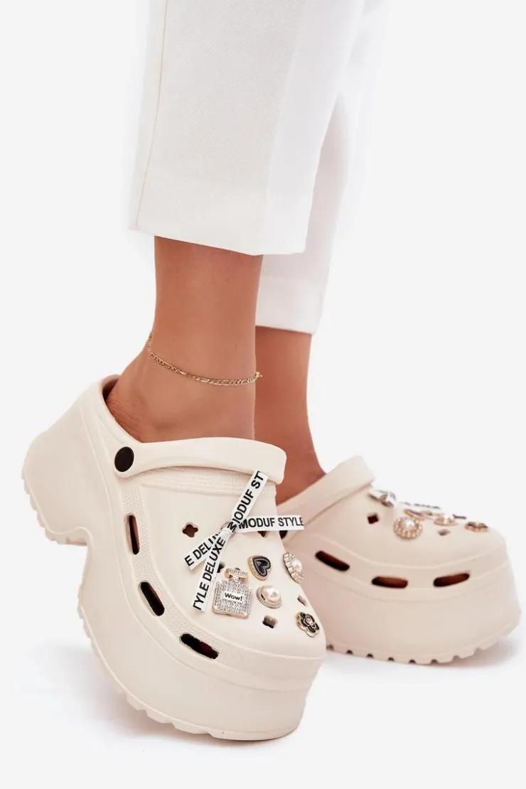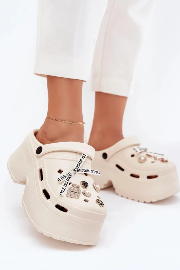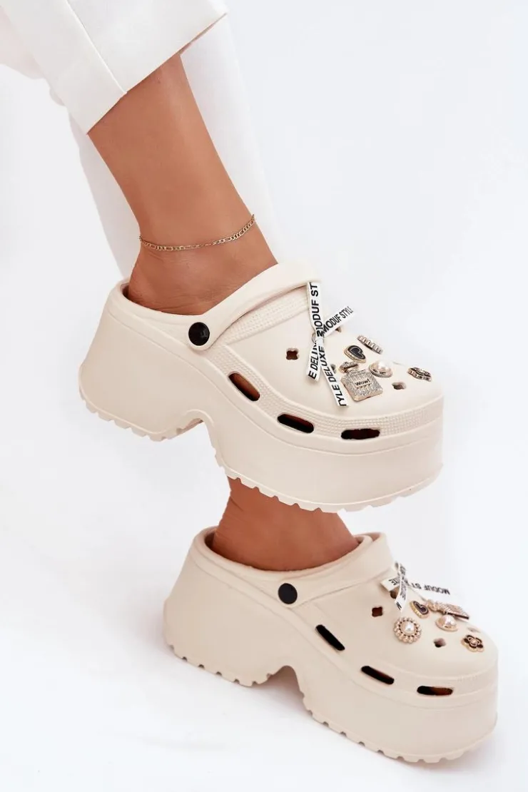 Damskie Boto Klapki Damskie Na Masywnej Platformie Z Przypinkami Beżowe Vivira