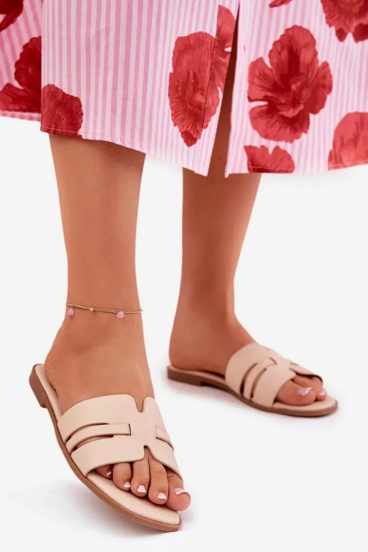 Klasyczne klapki damskie wykonane z eko skóry, osadzone na płaskim obcasie, które łączą elegancję z wygodą. Wycięcia i subtelny paseczek nadają im lekkości i nowoczesnego charakteru. Idealne na co dzień, te klapki będą doskonałym wyborem na ciepłe dni, świetnie komponując się z sukienkami, spódnicami czy spodniami, łącząc prostotę z funkcjonalnością. Przy wyborze rozmiaru prosimy sugerować się tabelą rozmiarów.