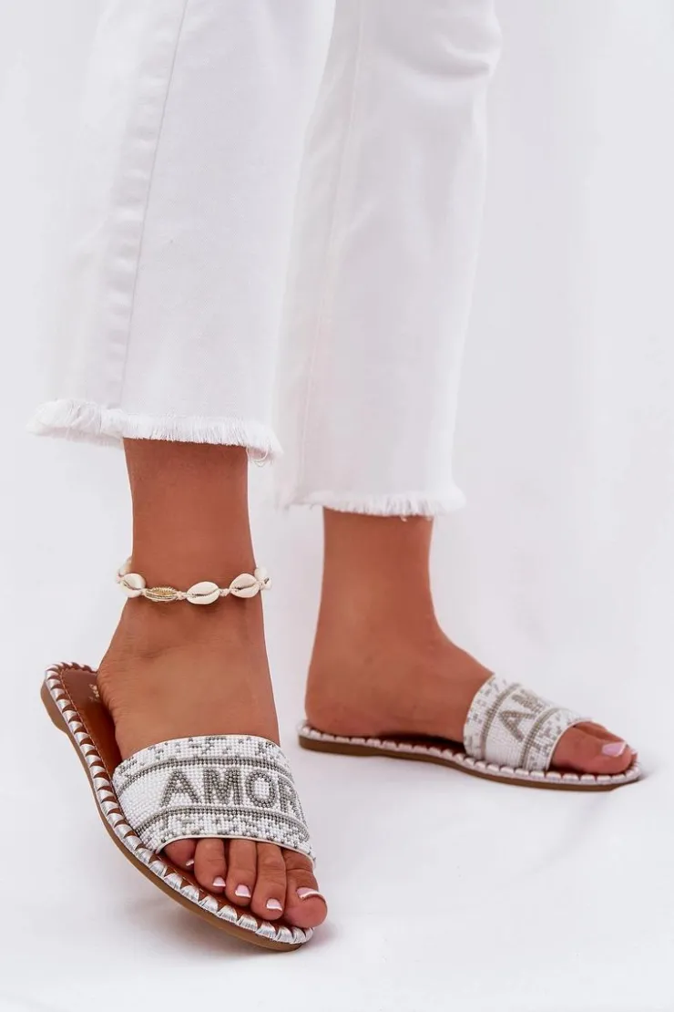 Damskie klapki na płaskim obcasie to doskonały wybór na upalne dni! Model ten posiada zdobiony pasek oraz efektowny napis Amore, który nadaje im wyjątkowego charakteru. Świetnie komponują się z różnymi stylizacjami, stanowiąc uniwersalny element garderoby. Koniecznie musisz je mieć! Przy wyborze rozmiaru prosimy sugerować się tabelą rozmiarów.