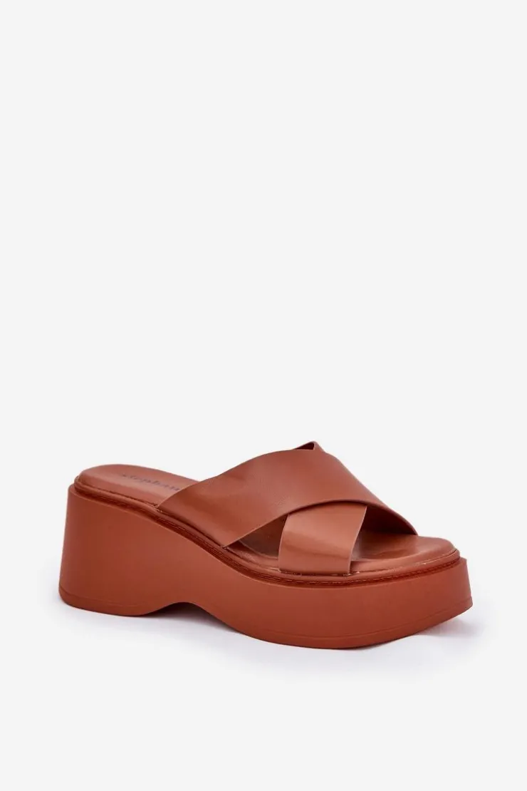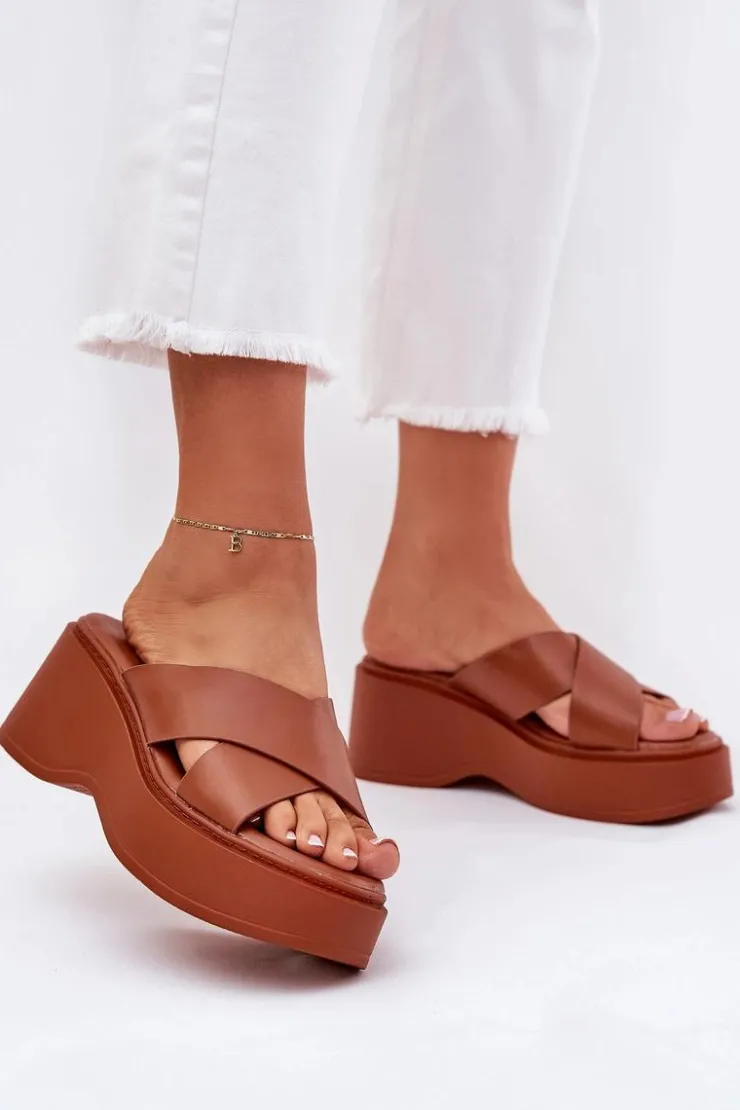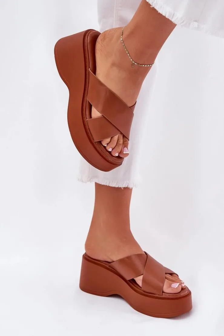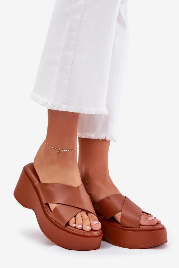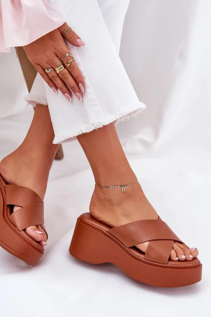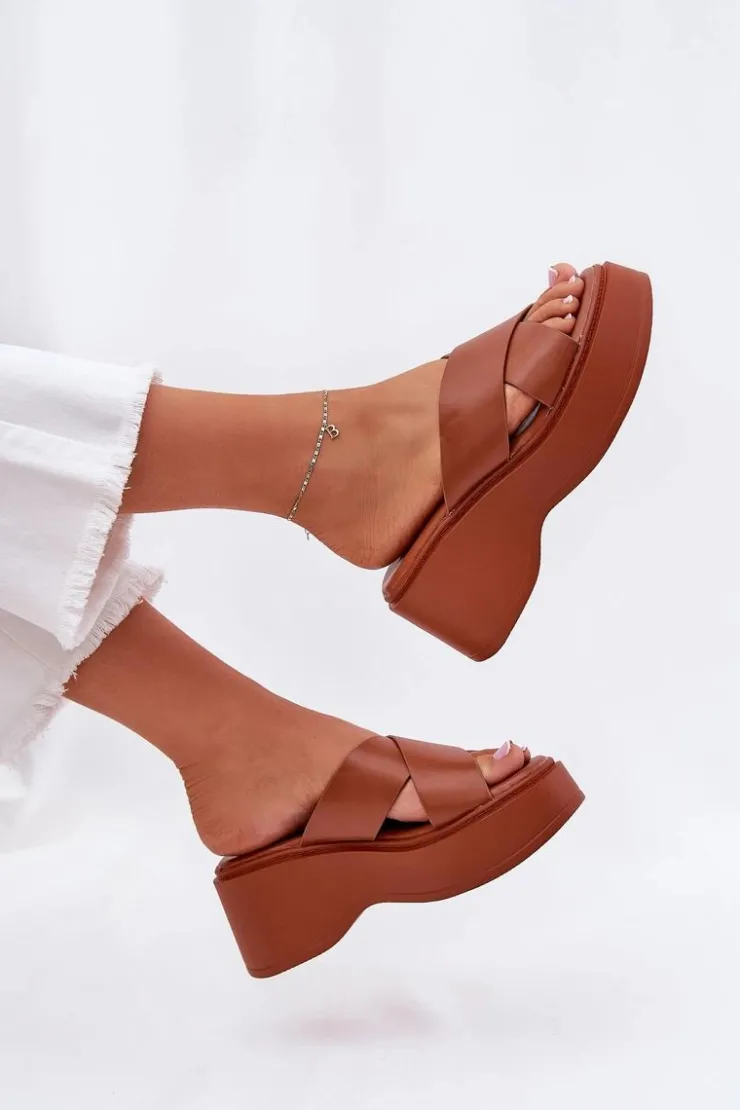 Damskie Boto Klapki Damskie Na Platformie I Koturnie Camel Nelithraea